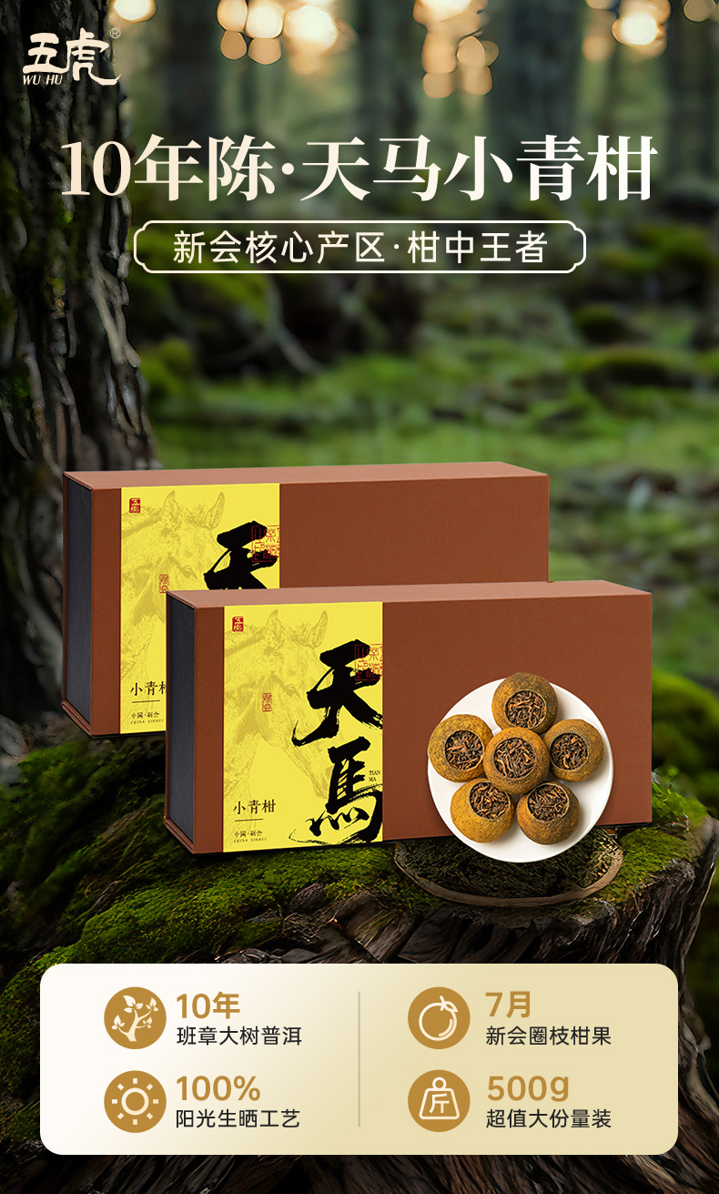茶叶 小青柑 普洱 天马小青柑 茶叶礼盒 书型盒 茶饮 五虎 250g