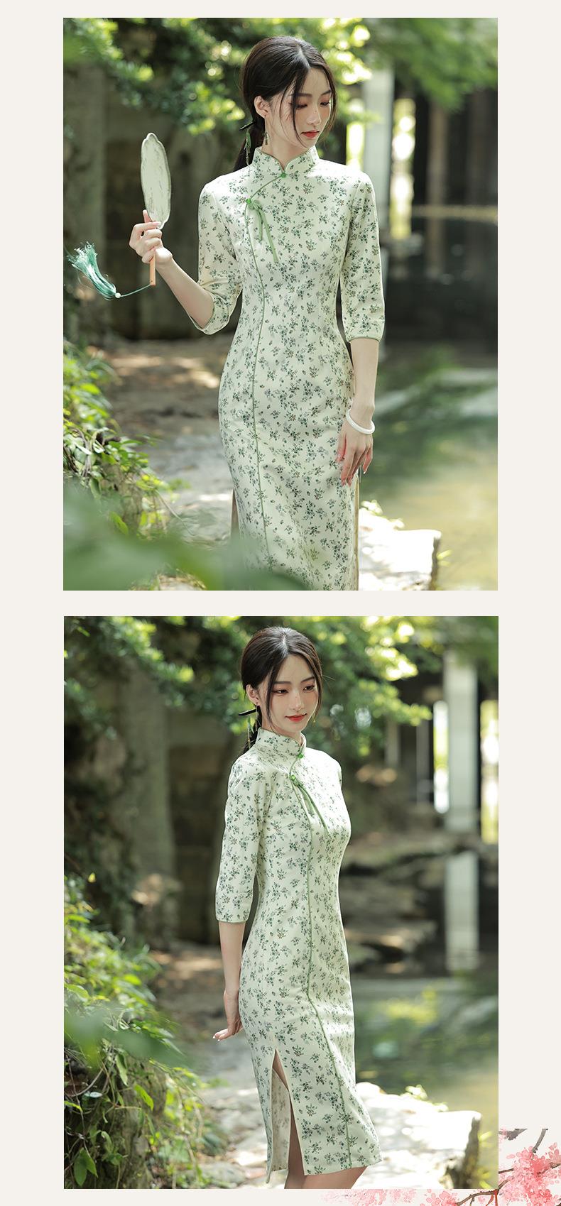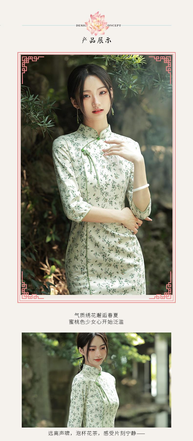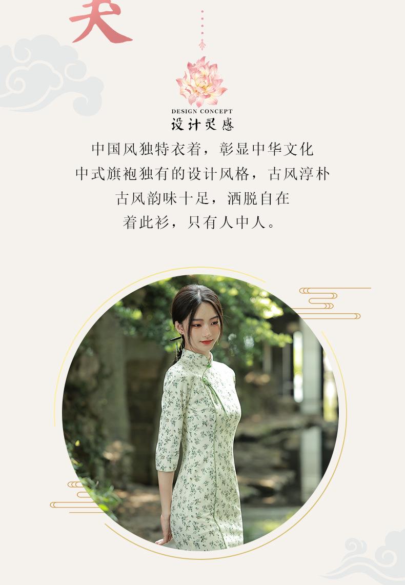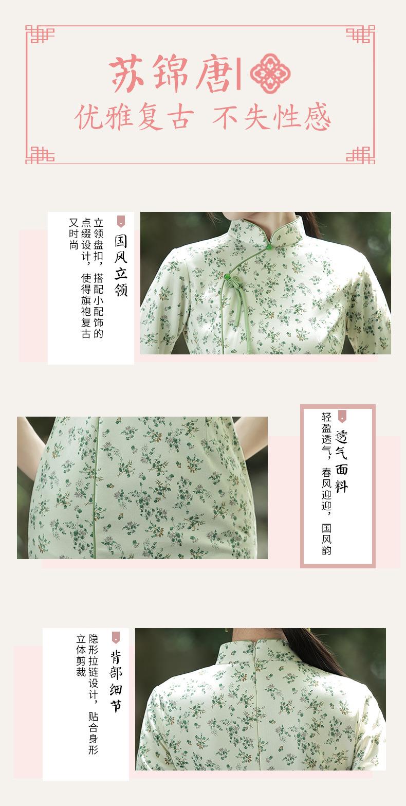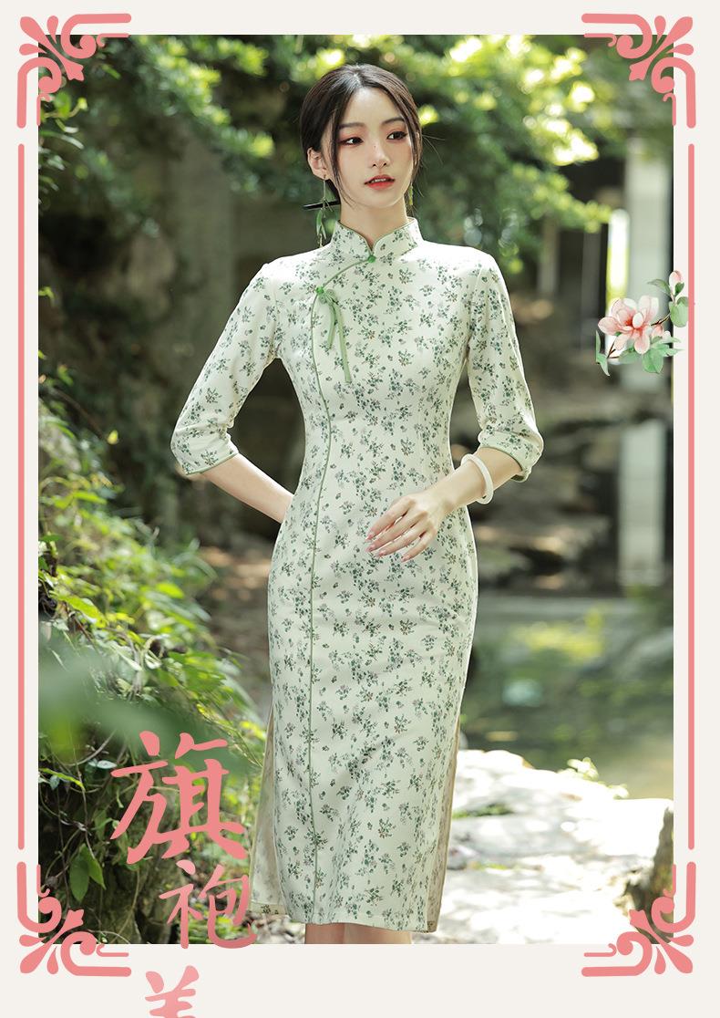 2023秋款雪花绒印花中长款旗袍连衣裙复古改良古法旗袍少女年轻款