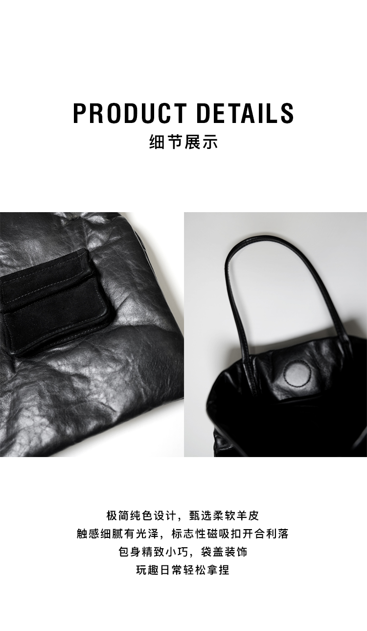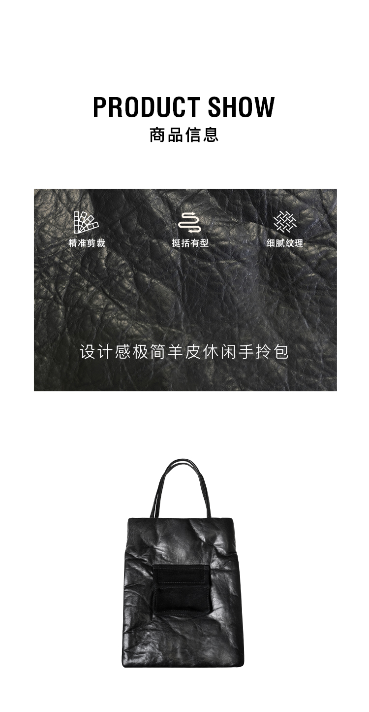 HIDEMI BookBag系列设计感极简羊皮纯色磁吸扣休闲手拎包