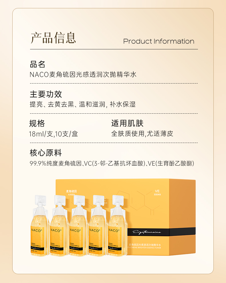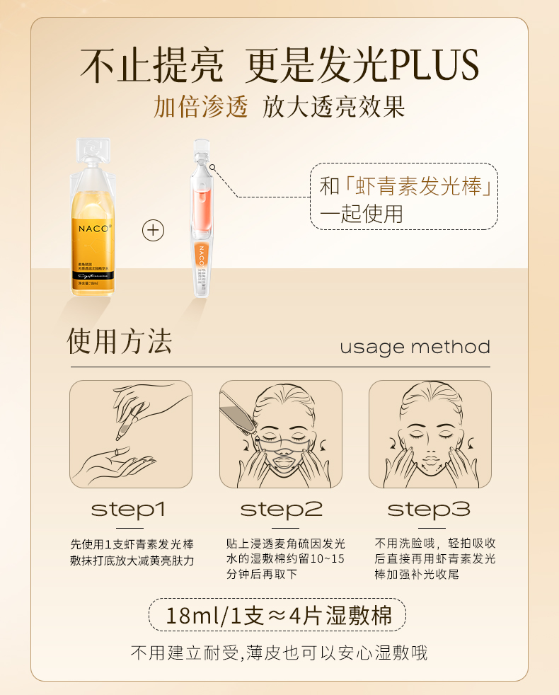 【补光断黑水】NACO麦角硫因前导水补光促吸收提亮肤色水油双导精华爽肤水