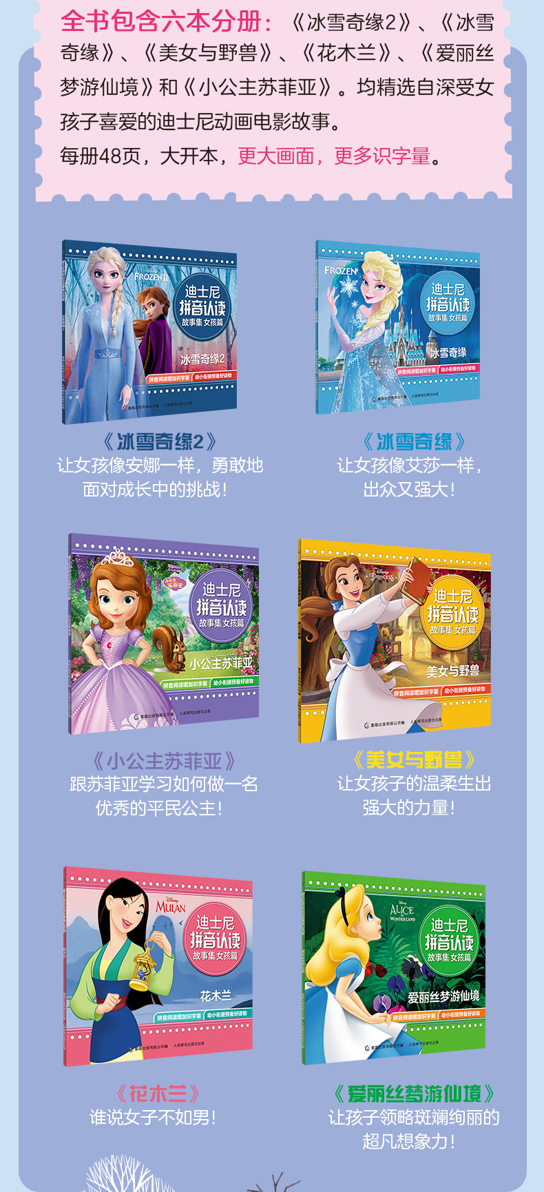 迪士尼公主书 冰雪奇缘故事书全套6册拼音认读艾莎绘本 3-4-5-6岁幼儿童阅读书籍 幼儿园中大班卡通漫画书 小学生一年级亲子图画书