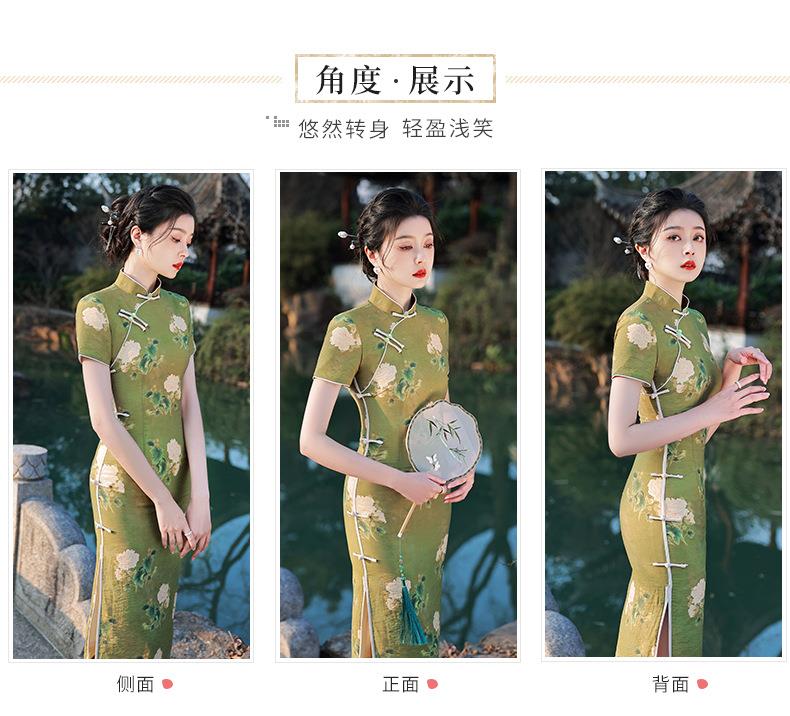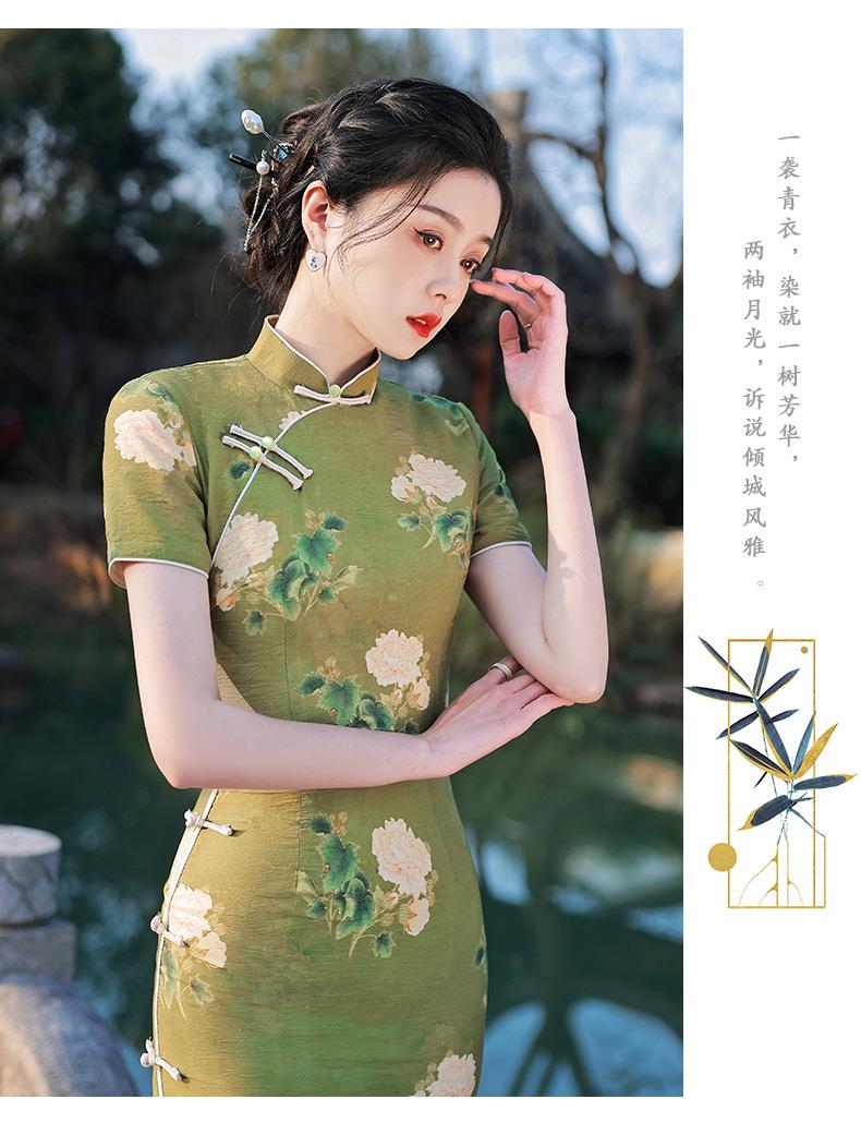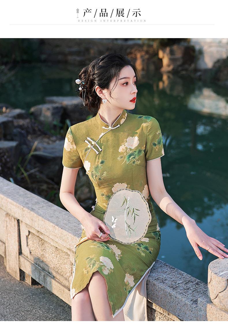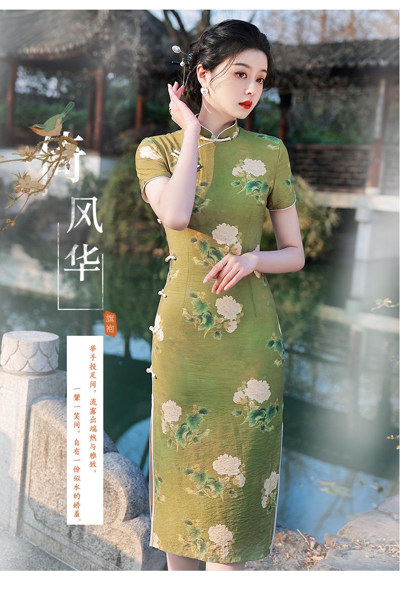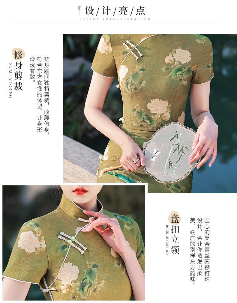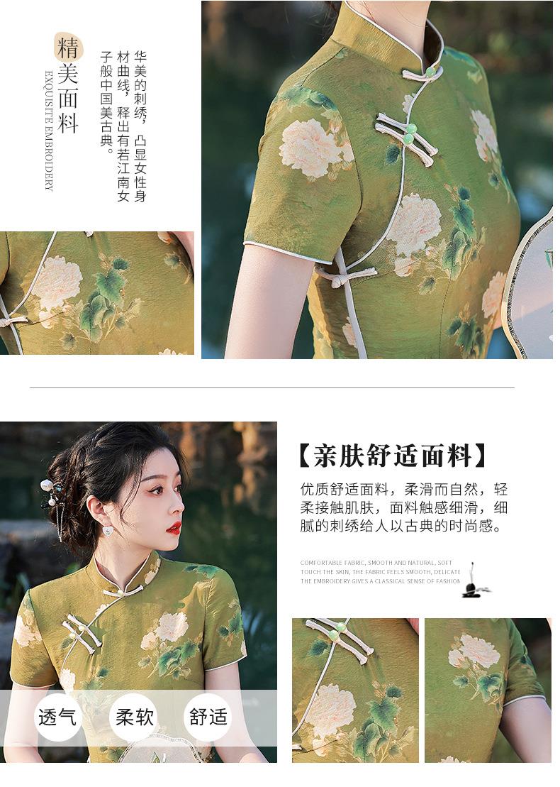 2023春夏款天丝棉中长款侧八扣旗袍连衣裙 复古改良年轻款仙女裙