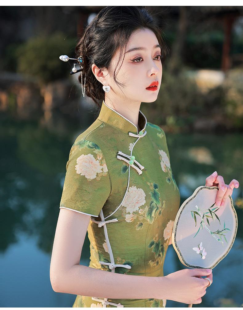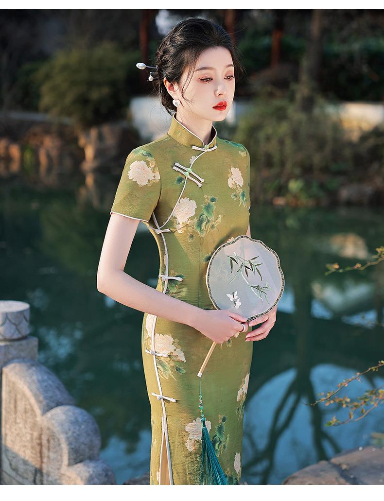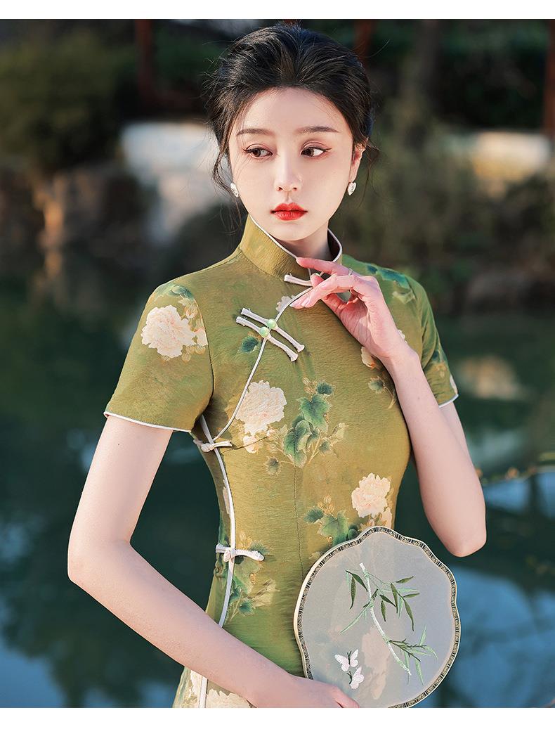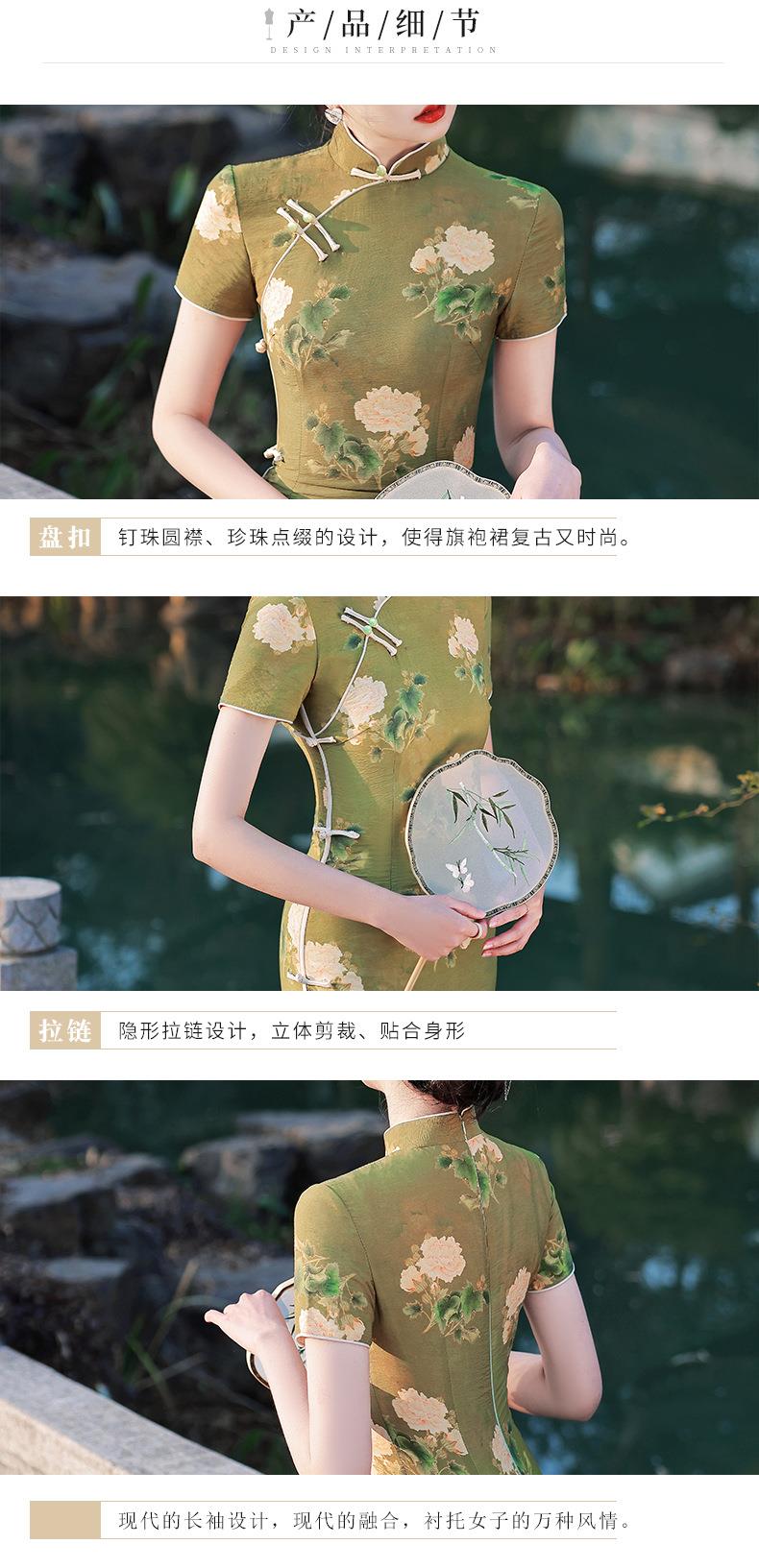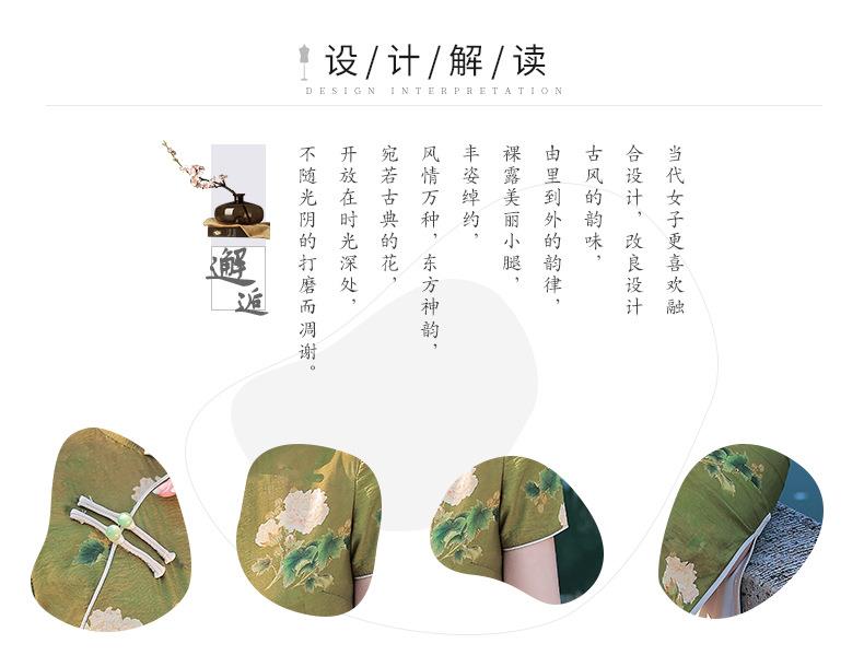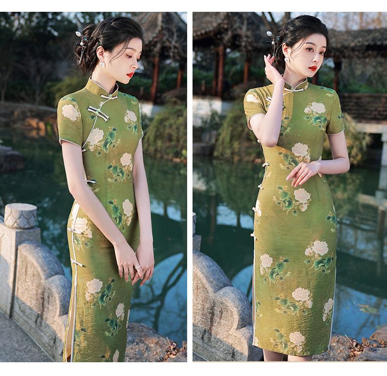 2023春夏款天丝棉中长款侧八扣旗袍连衣裙 复古改良年轻款仙女裙