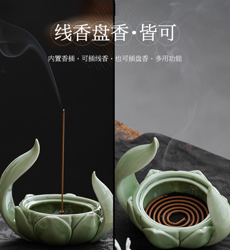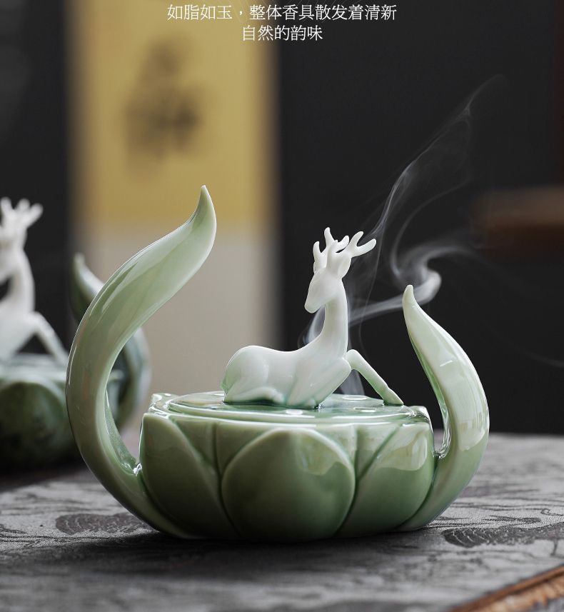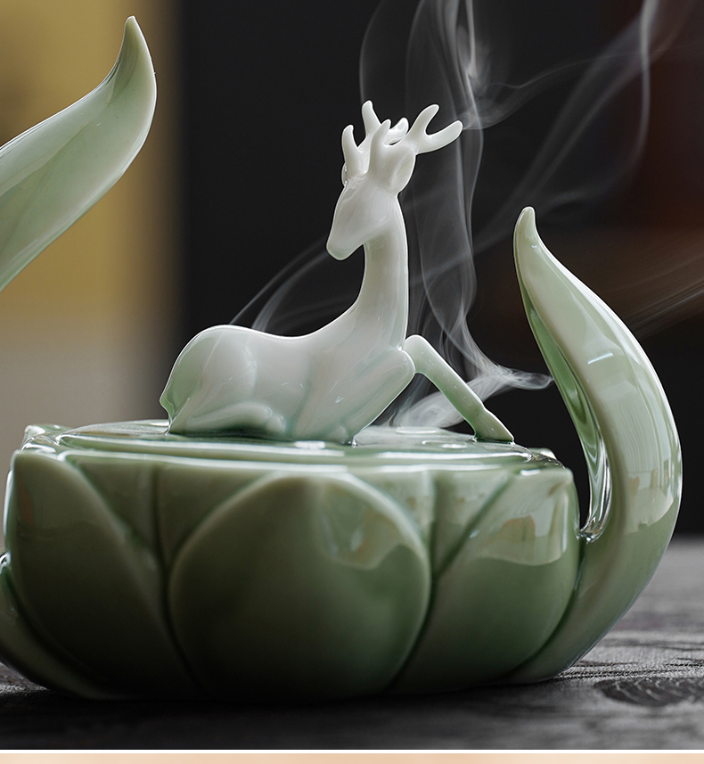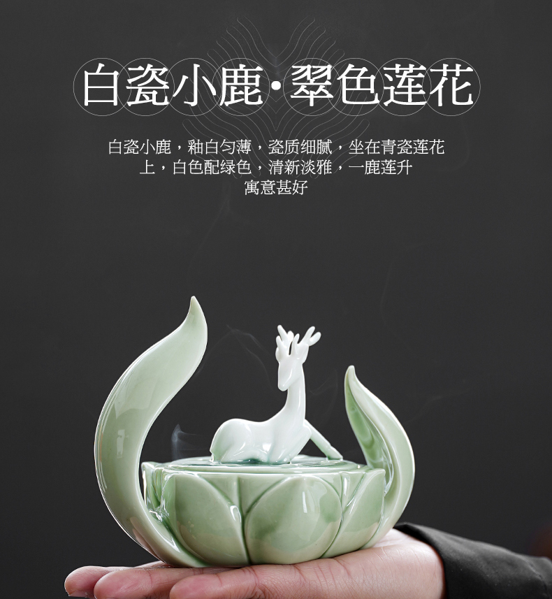 一鹿莲升 盘香炉 陶瓷香薰炉 莲花沉香