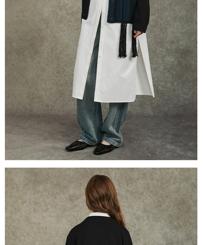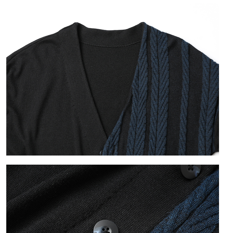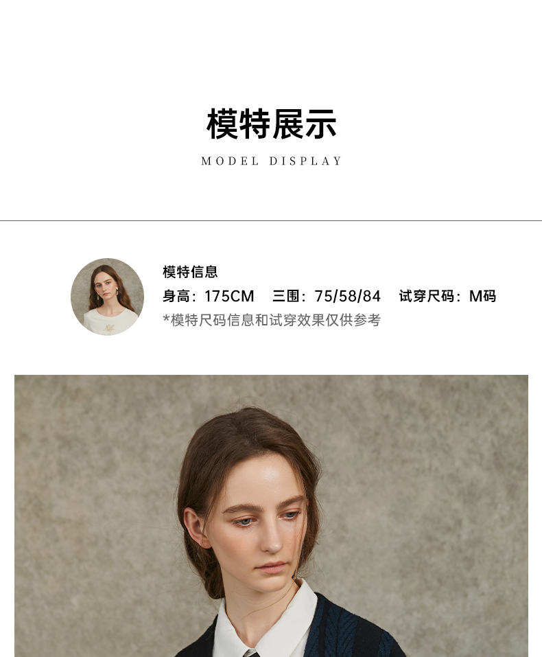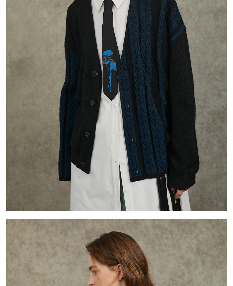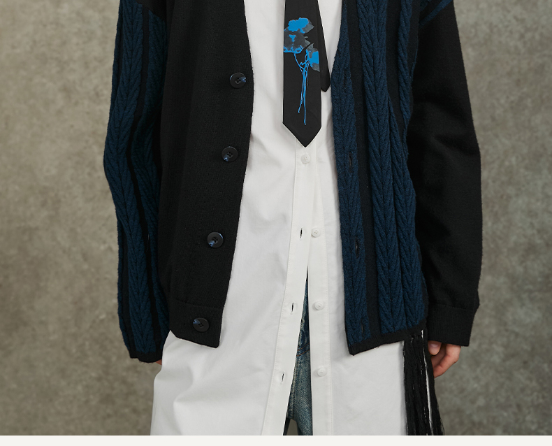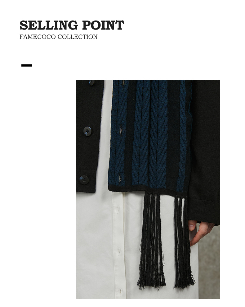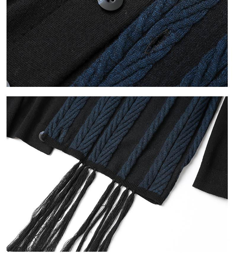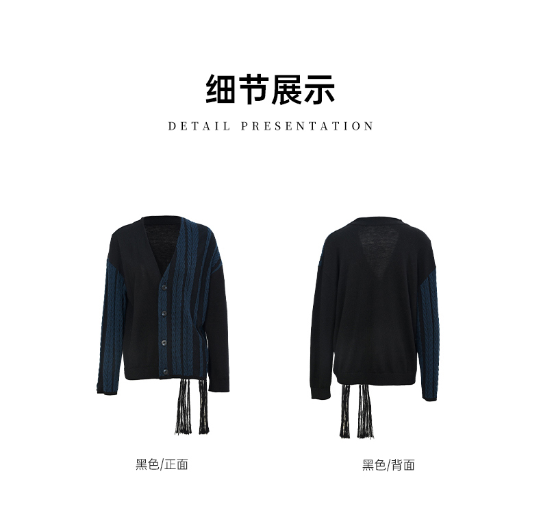 Famecoco范可儿设计款时尚V领针织开衫流苏拼接短款外套FAC6DE004