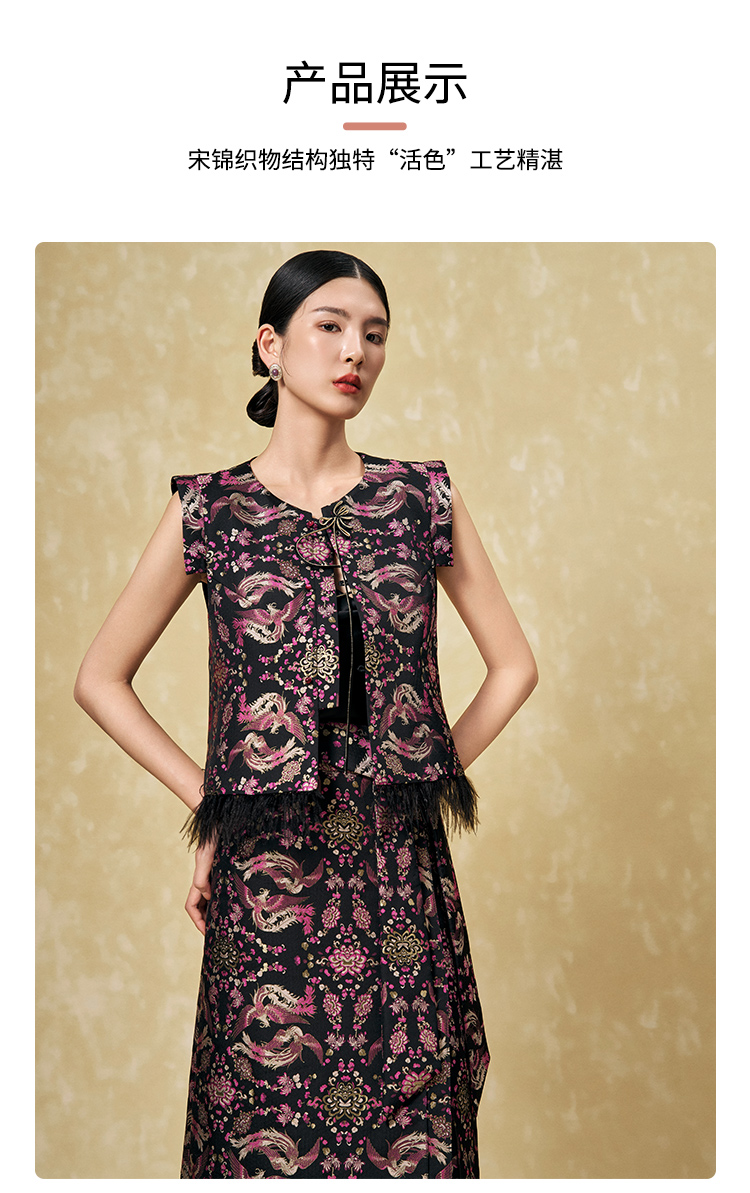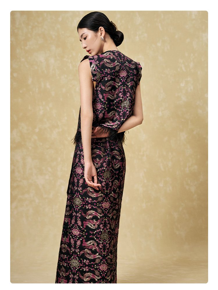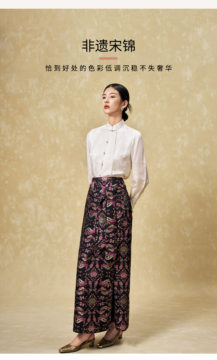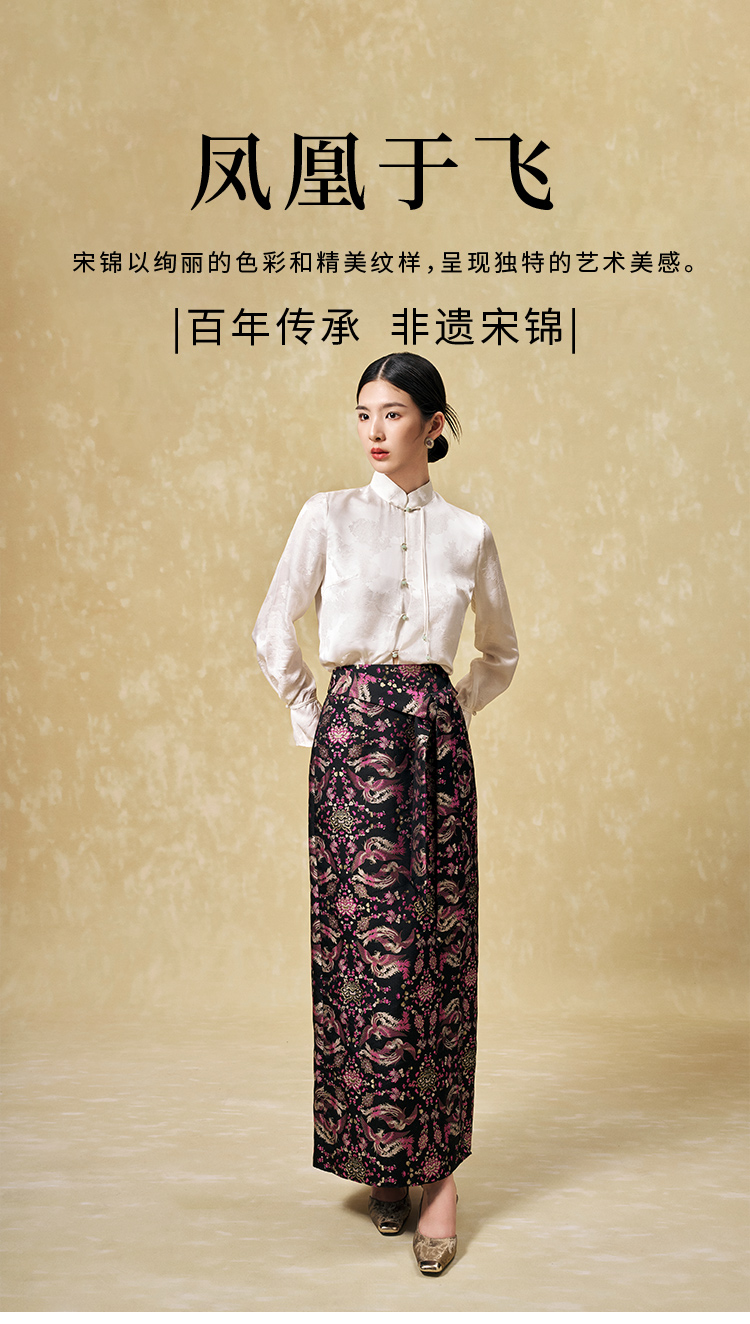 SAINTJOY/上久楷 女式宋锦半身裙 中国风 复古 凤凰于飞 CY1094207002