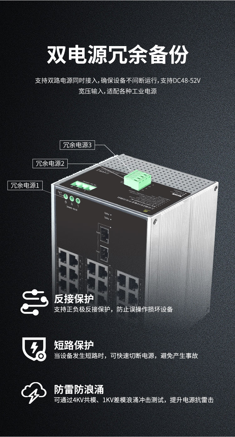 工业级2光24电全千兆交换机三冗余 GNT-IG1226GF-AC