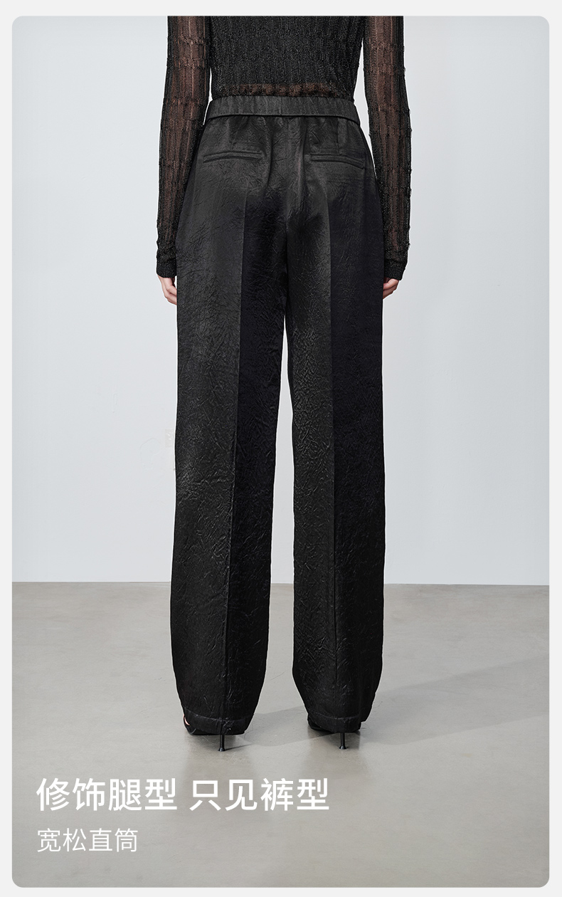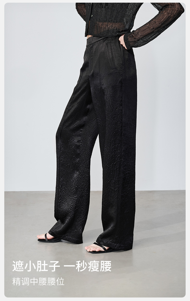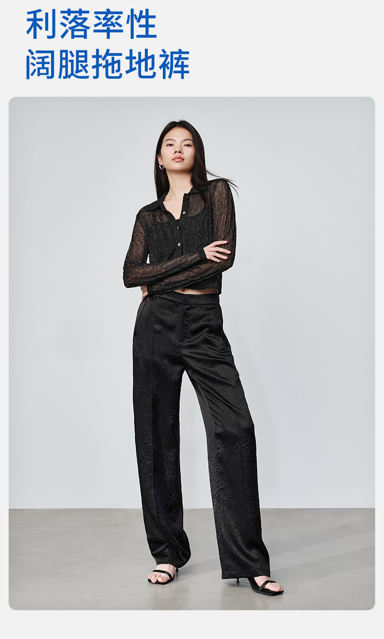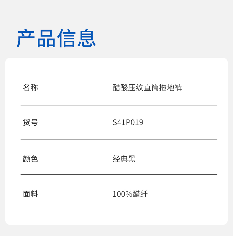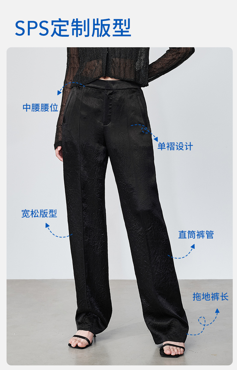 simplepieces春季新品SPS休闲裤女醋酸直筒拖地裤