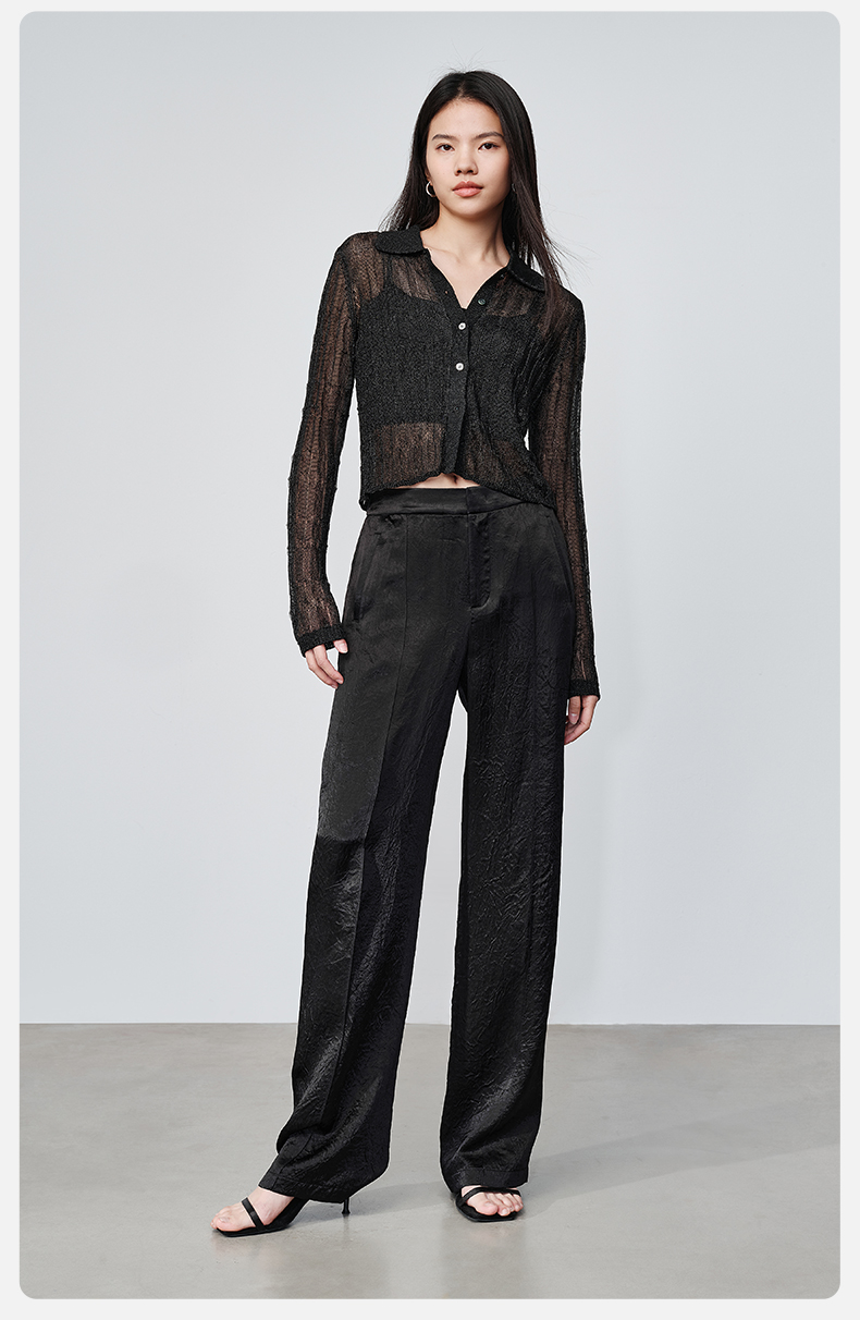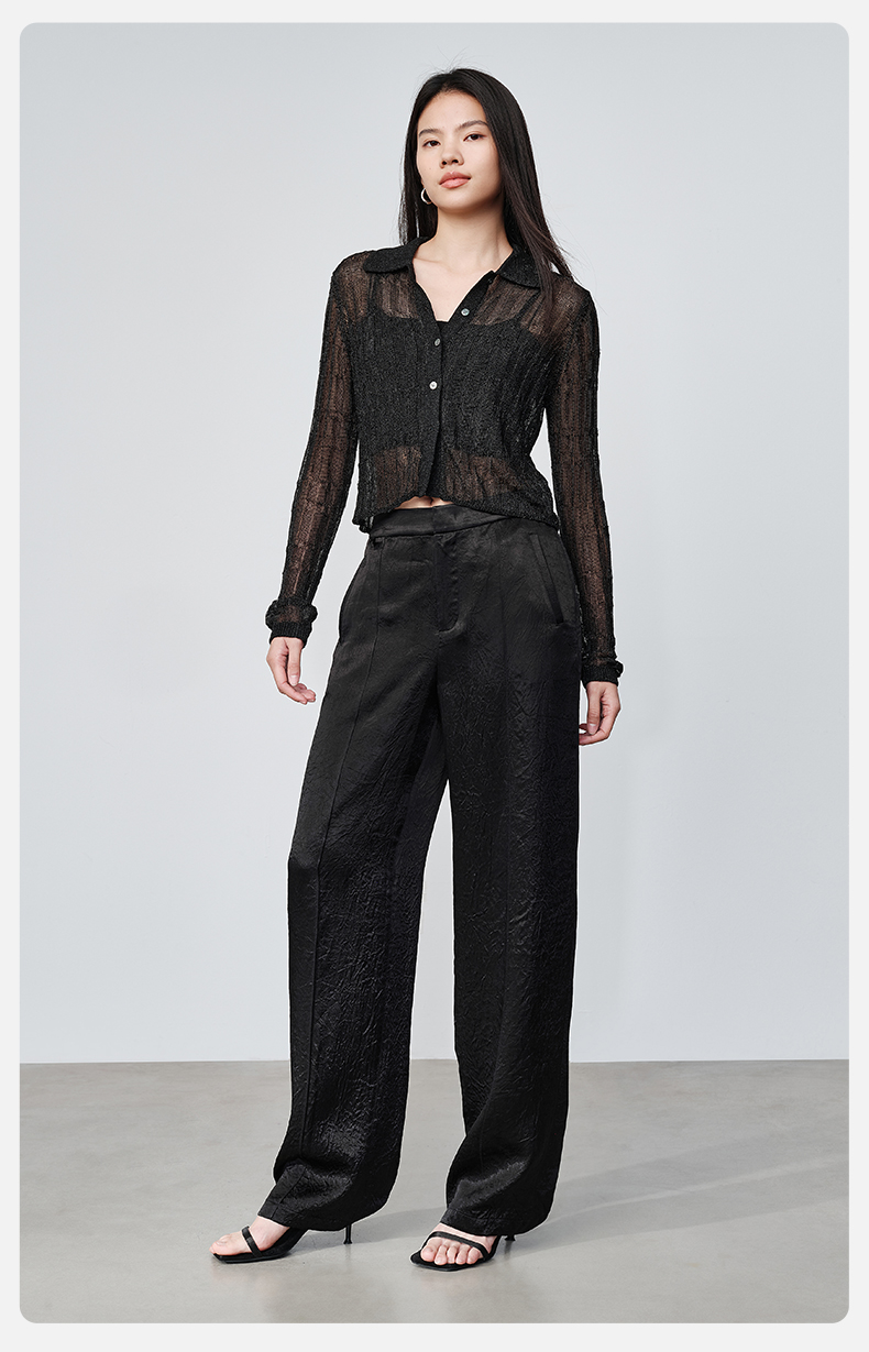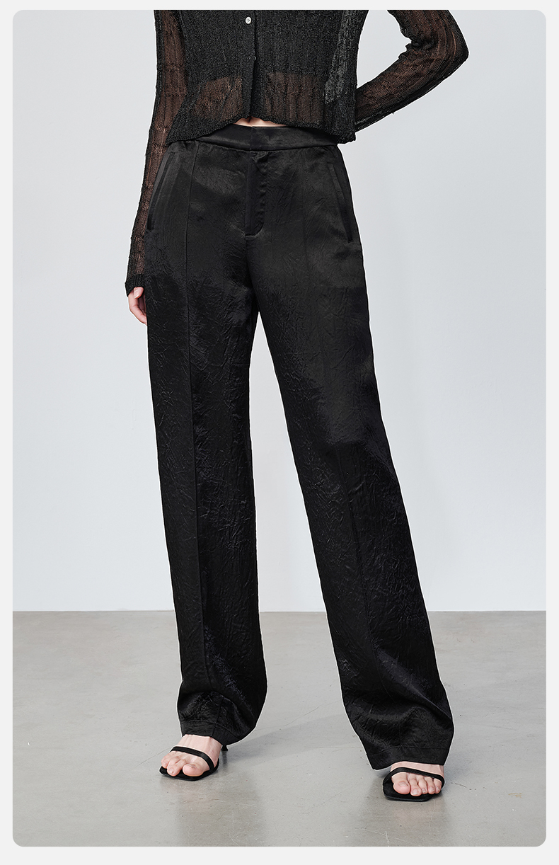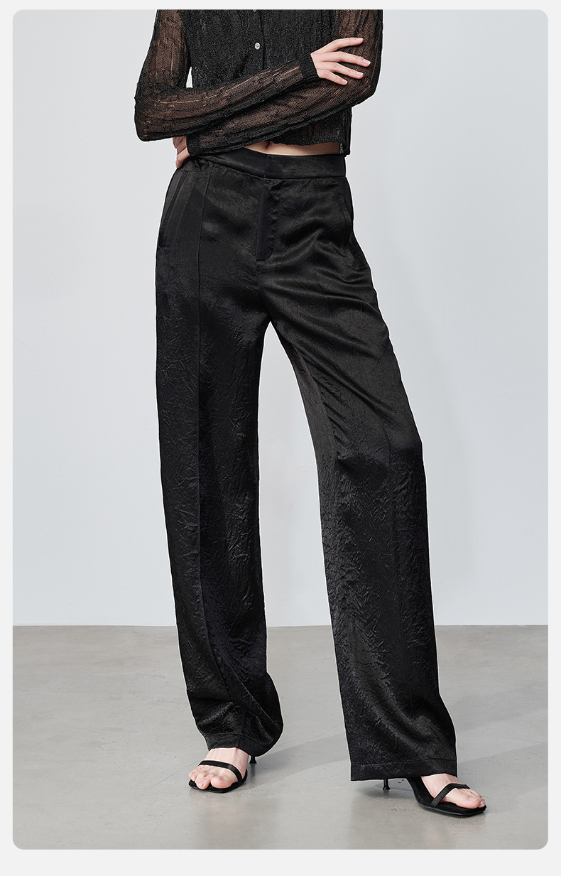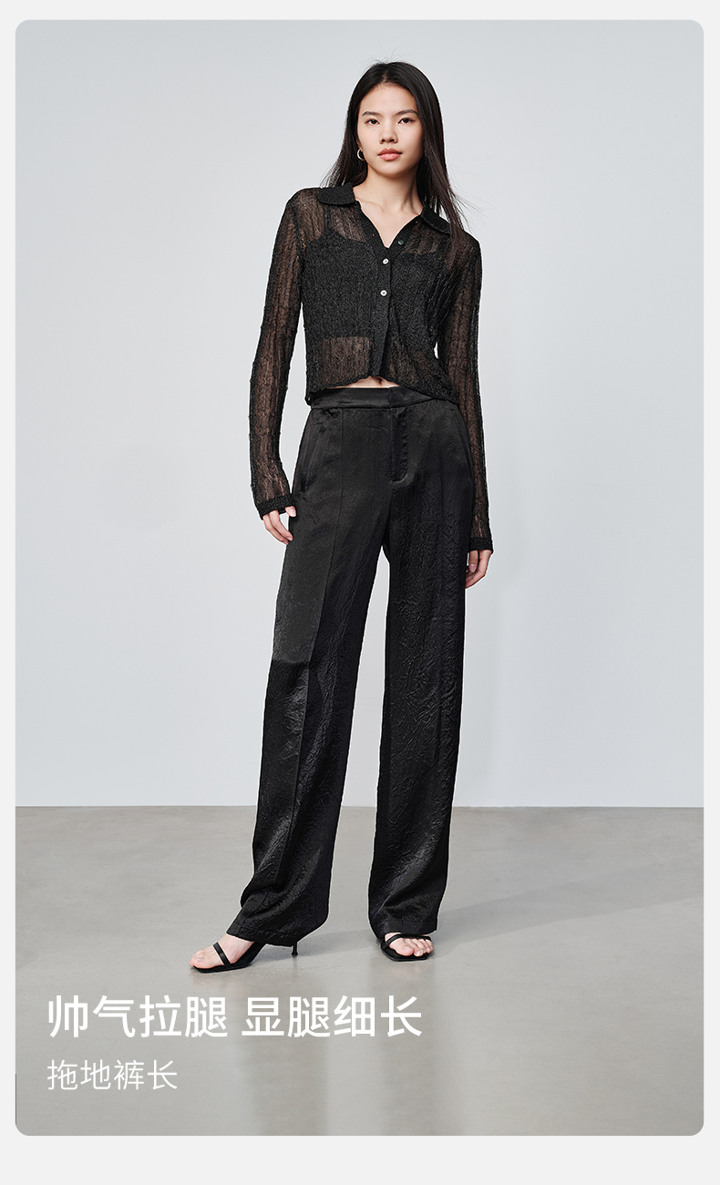 simplepieces春季新品SPS休闲裤女醋酸直筒拖地裤