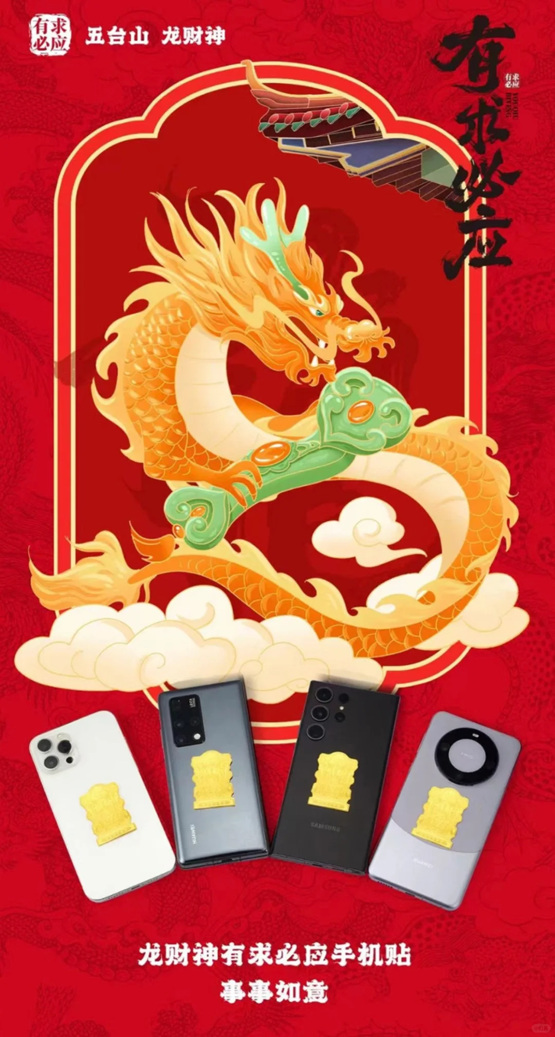 得益于龙五爷的财富感召,给予了五台山更多的灵感和契机,耗时数月,终于给福宝们出品了这款《财神五爷黄金手机贴》,作为新年的一份鸿财运,送给辛苦一年的自己,或者是身边重要的亲人朋友。