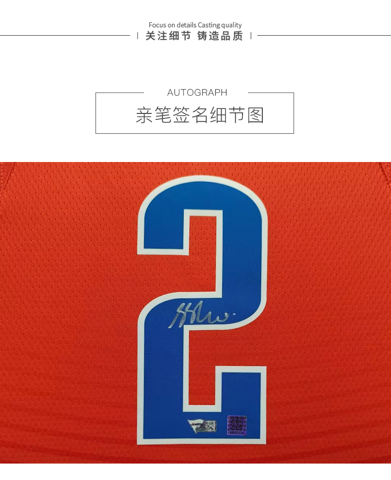 收藏系列 亚历山大 2号橙色 亲笔签名球衣