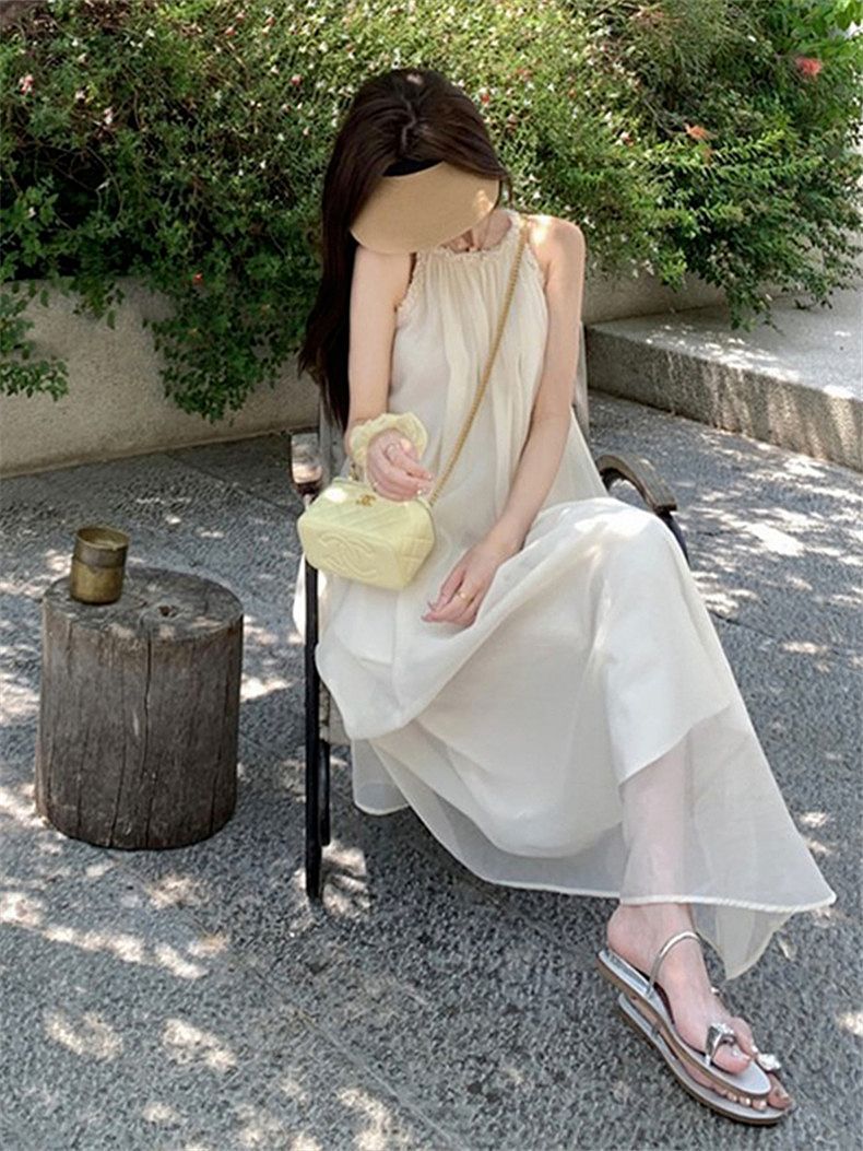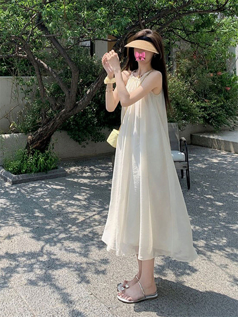 【超仙❗️挂脖吊带连衣裙】设计新颖,柔软舒适,仙气十足,优雅柔美裙子,简约大方,夏新款法式名媛气质海边小个子仙女长裙