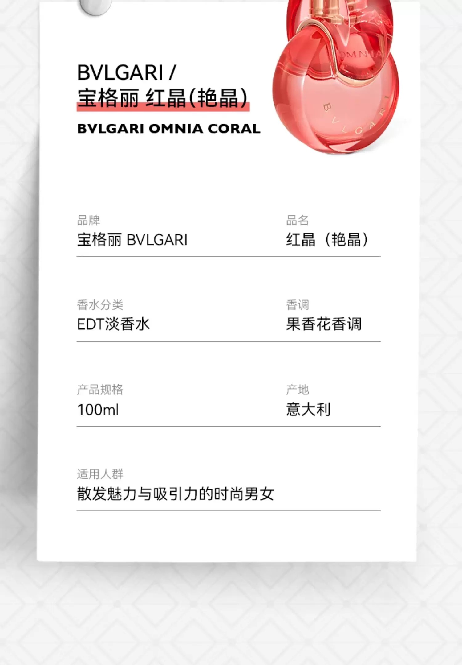 宝格丽 晶艳纯香/红水晶女士淡香水EDT(100ml)