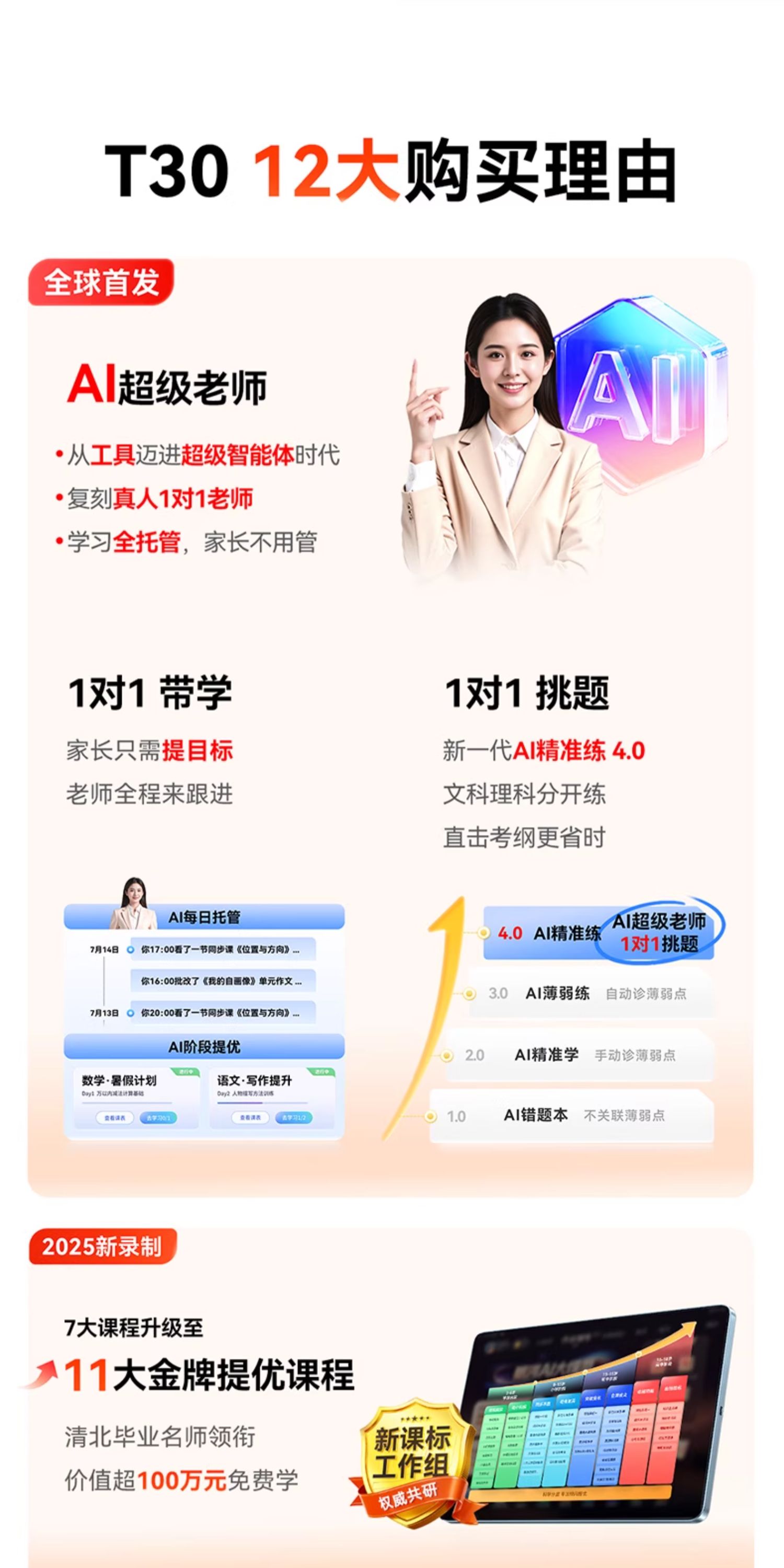 作业帮T30学练一体机/学习机小学初高中通用英语幼儿园儿童早教机