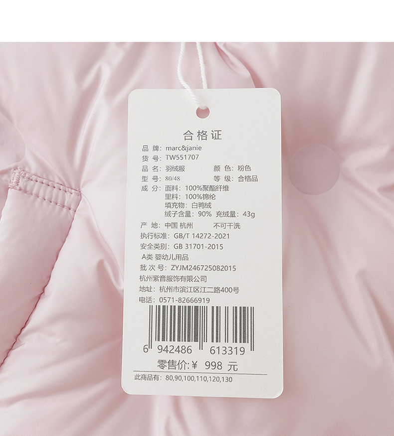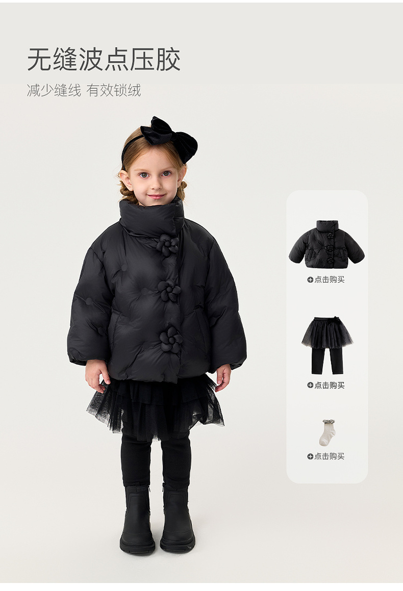 马克珍妮女童立体花朵轻盈面包羽绒服2025年冬装新款551707