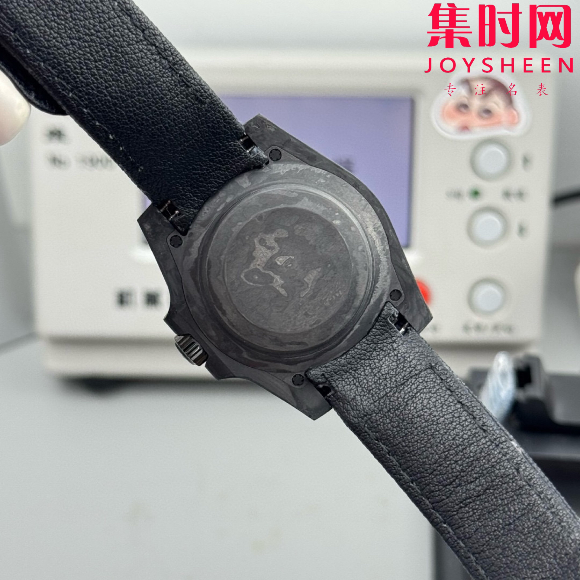 采用高端定制碳纤维表壳 搭载改Cal.3135一体全自动机械机芯 蓝宝石水晶镜面 尼龙牛皮融合魔术贴表带