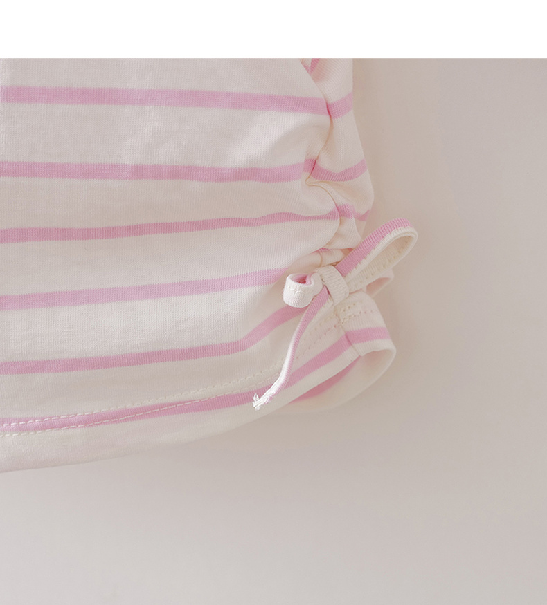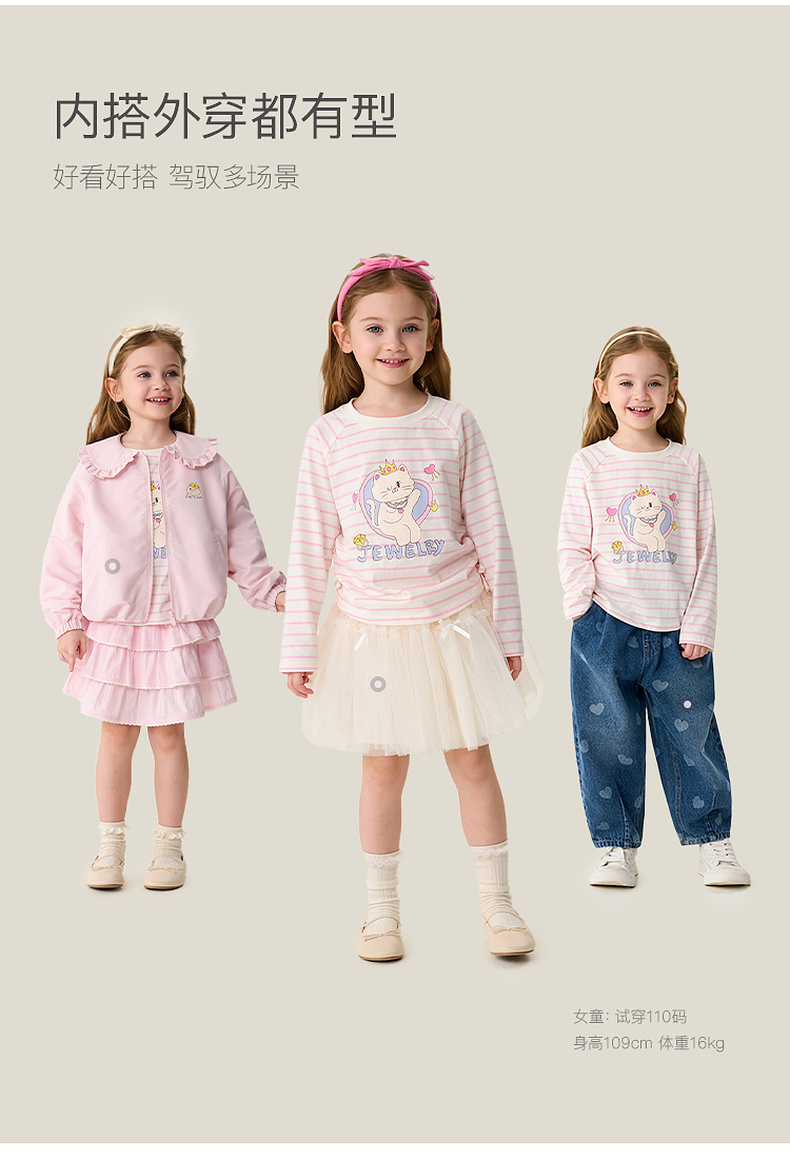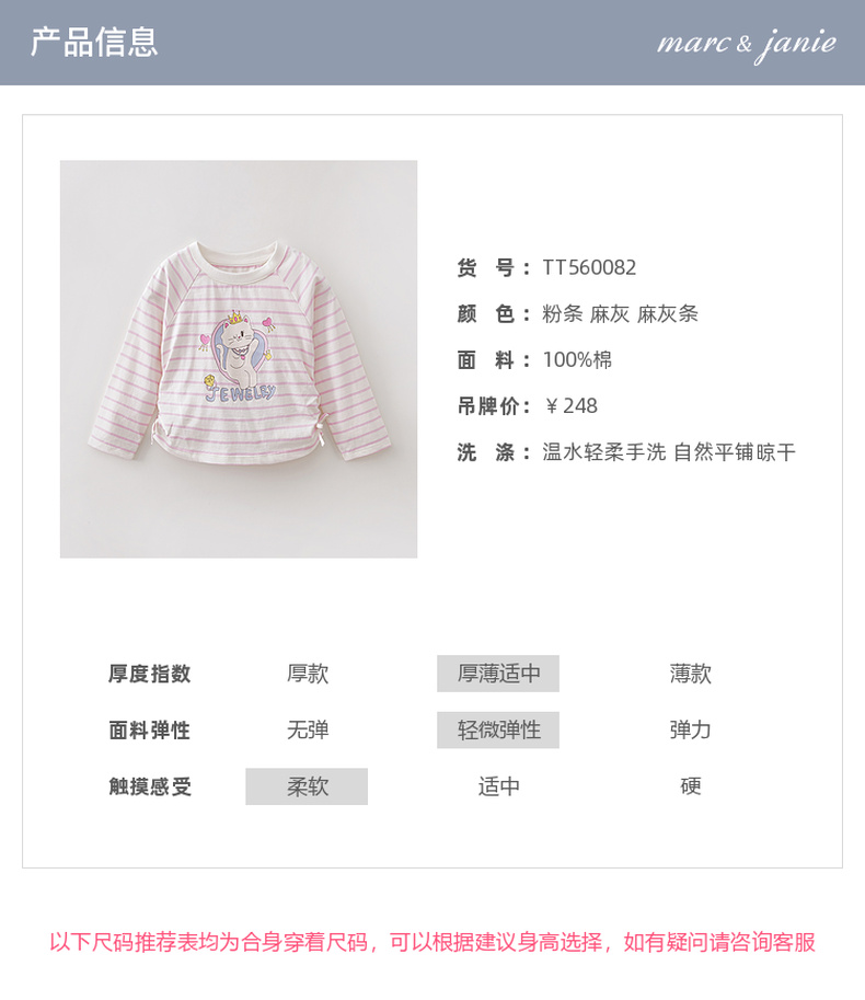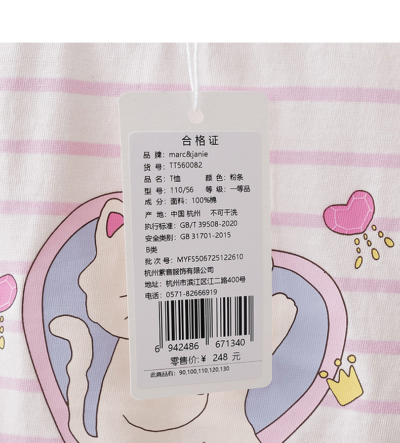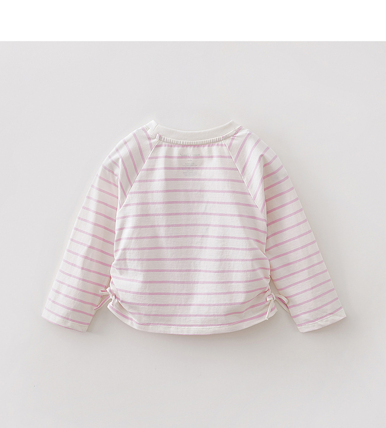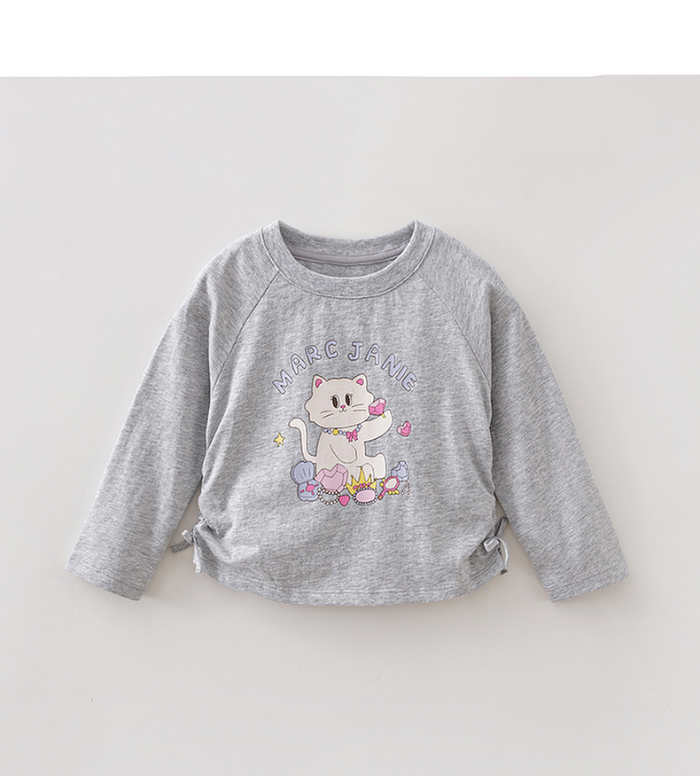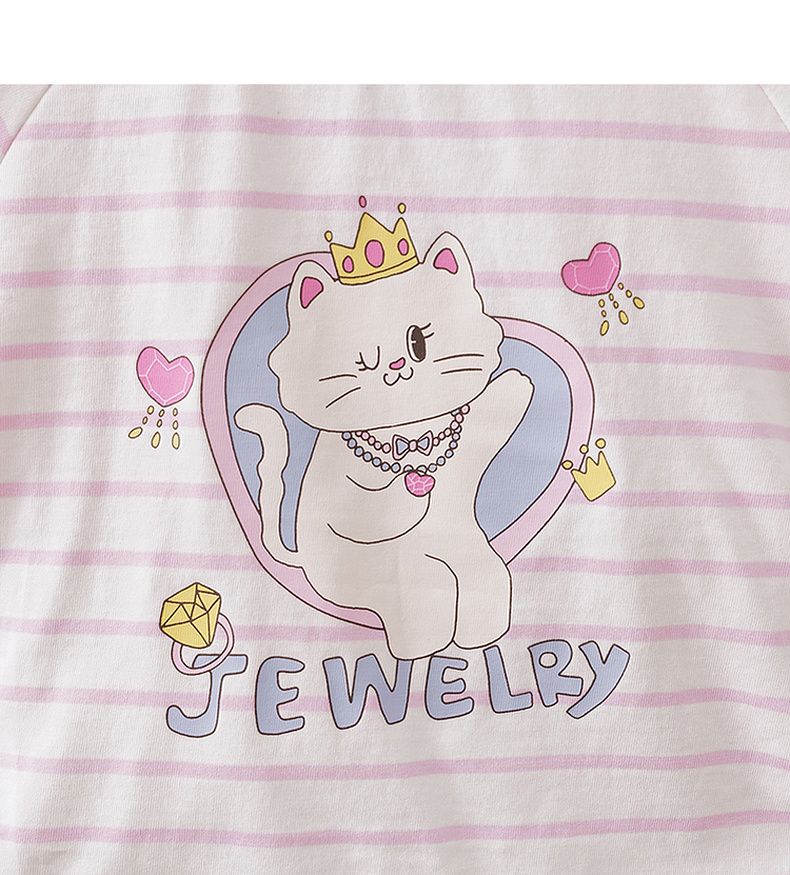 马克珍妮珠光宝气猫咪女童纯棉条纹抽褶T恤2026年春装新款560082