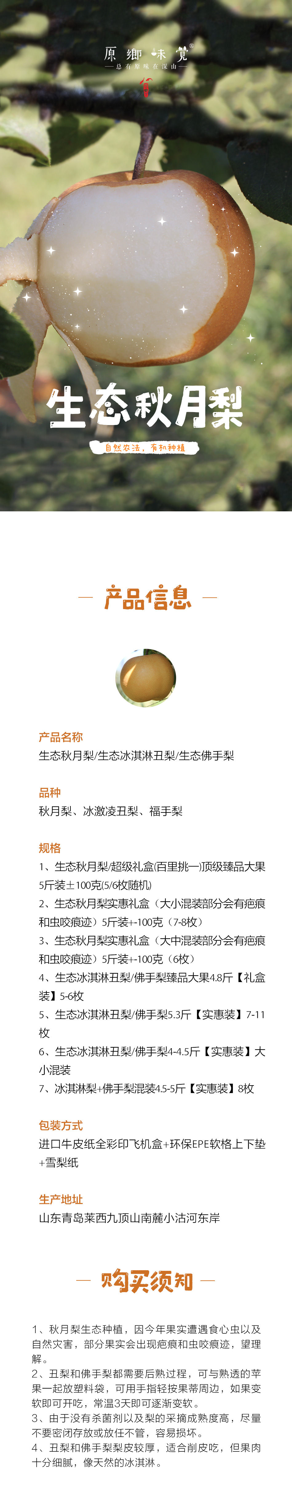 生态秋月蜜梨&冰淇淋丑梨&佛手梨(基地直发-顺丰包邮)| 多种规格,来自山东青岛莱西小沽河畔,生产者:小康园主【合作生产,公平贸易】