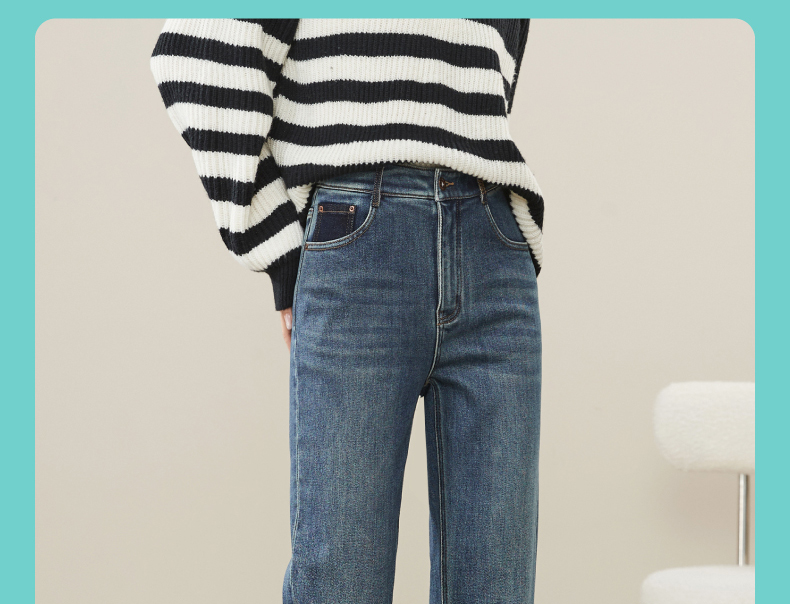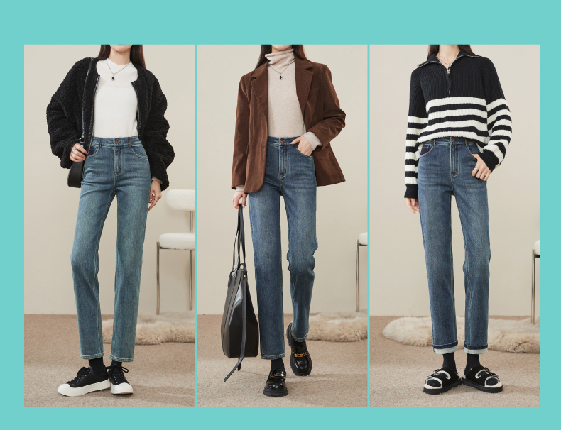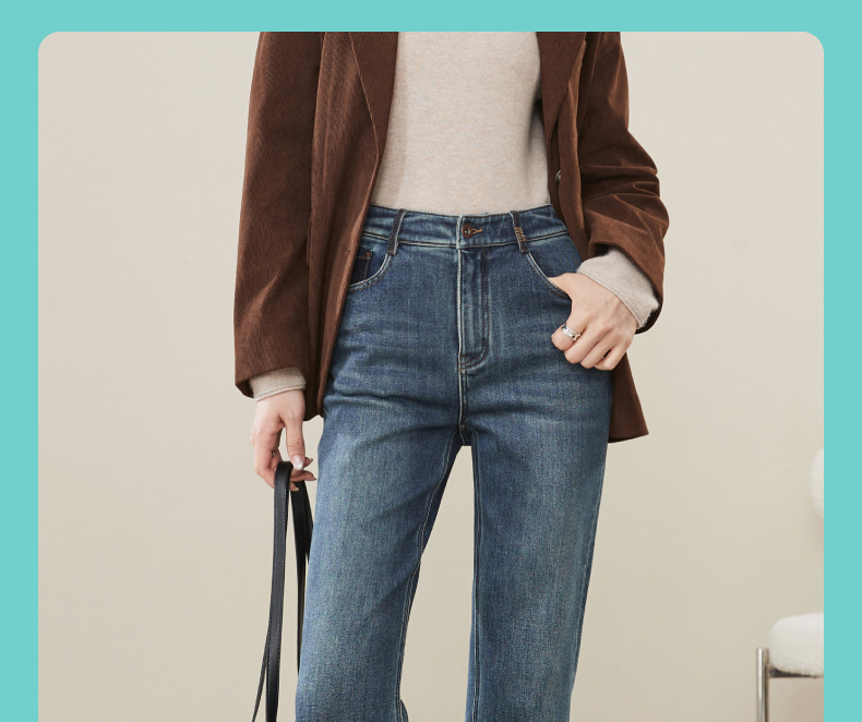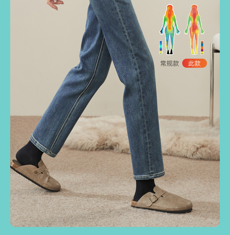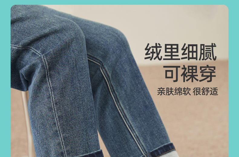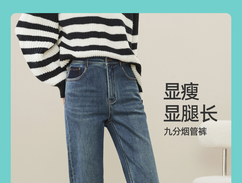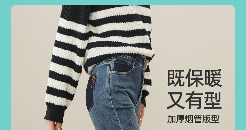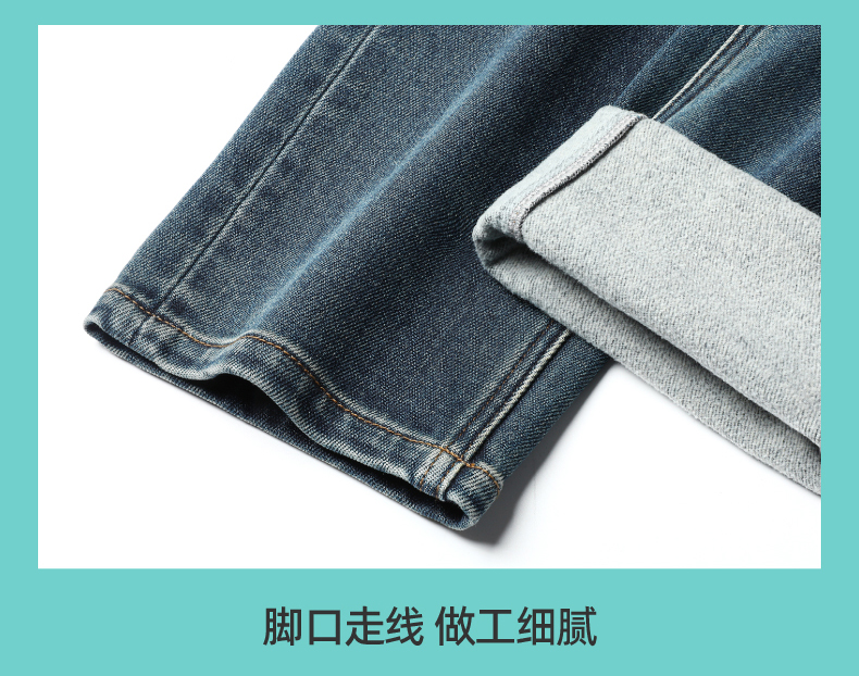 【加绒-保暖-烟管裤】逸阳冬季复古拉毛弹力显瘦直筒牛仔裤1379R