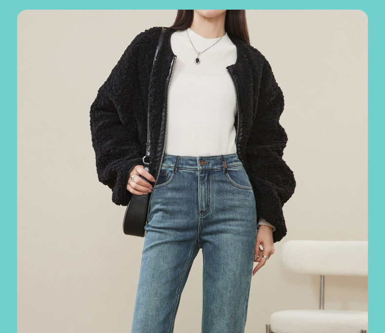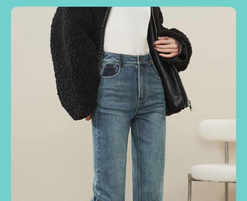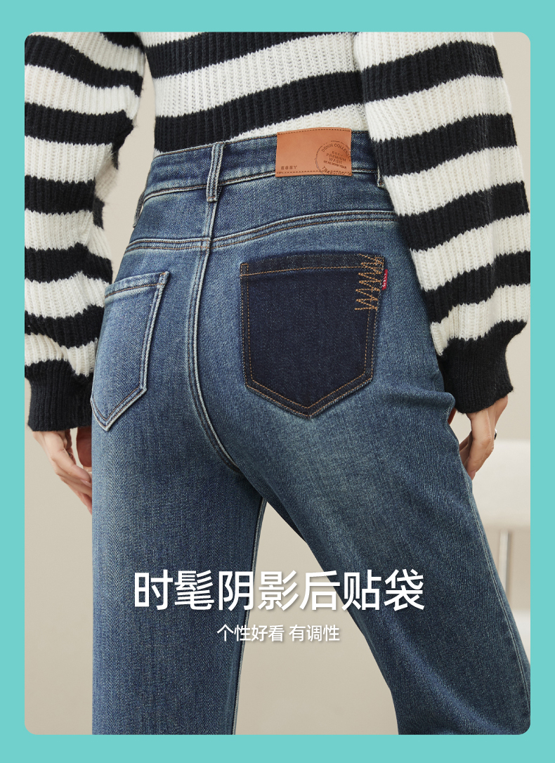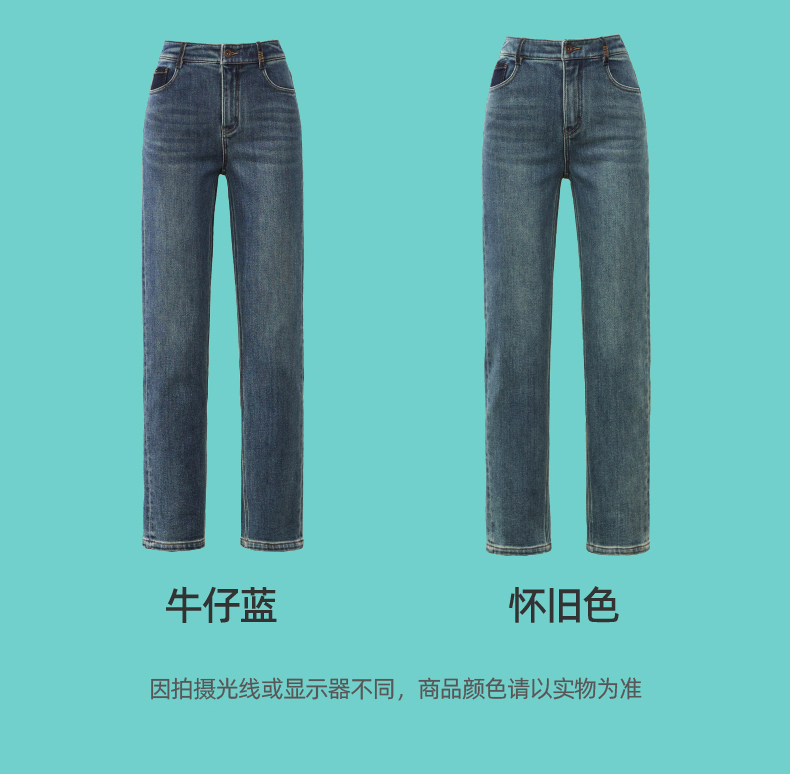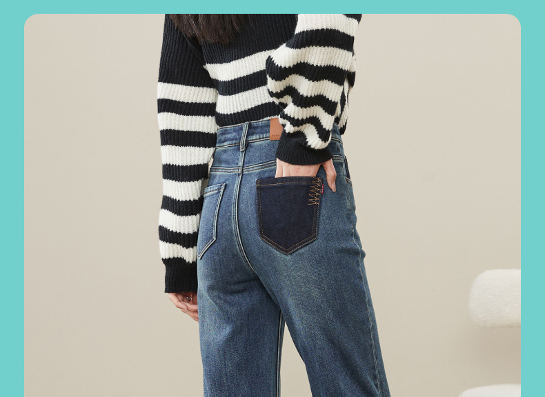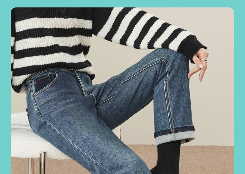 【加绒-保暖-烟管裤】逸阳冬季复古拉毛弹力显瘦直筒牛仔裤1379R