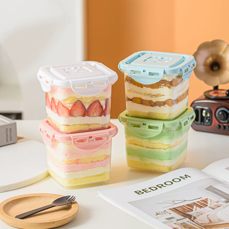 650ml PP密封罐 甜品慕斯蛋糕盒子 保鲜盒水果盒提拉米苏盒子点心桶