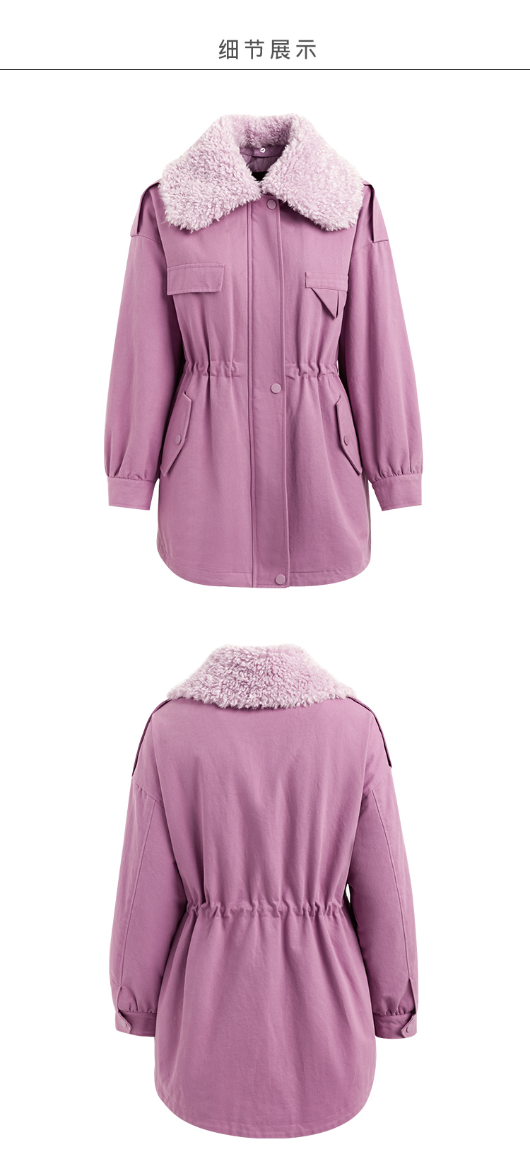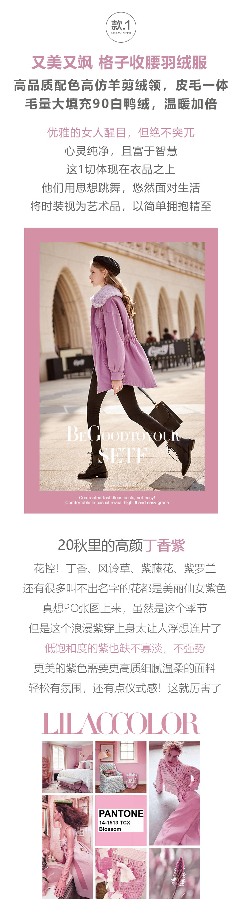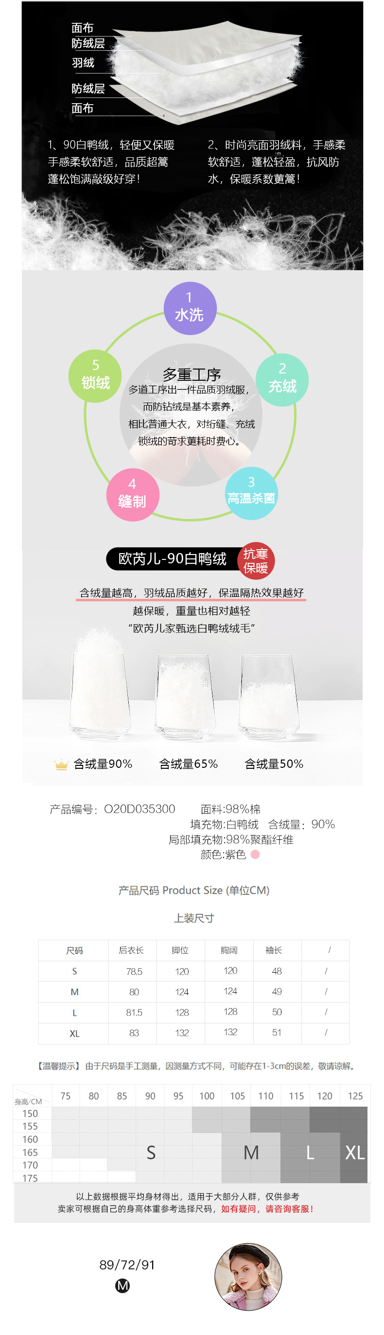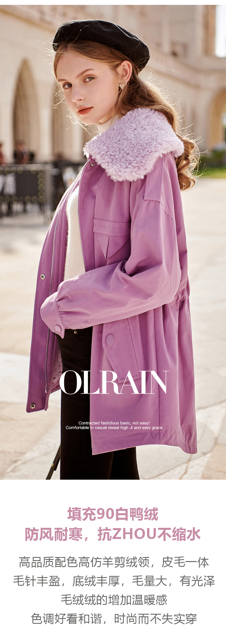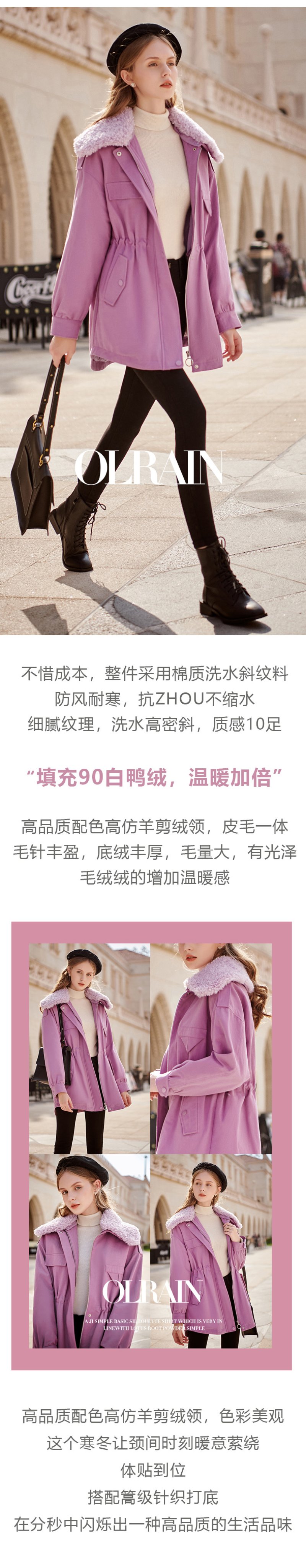欧芮儿羽绒服女冬季新款修身显瘦收腰白鸭绒洋气紫色中长款