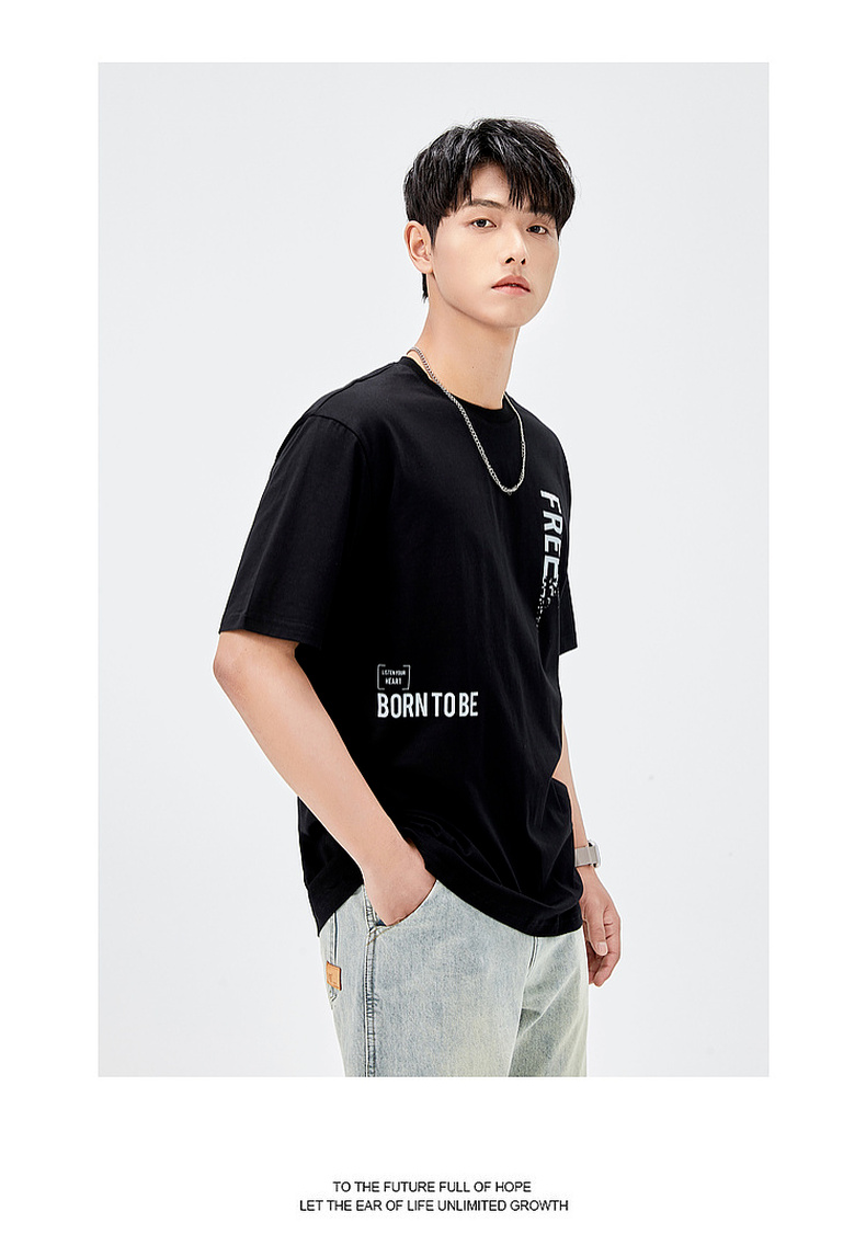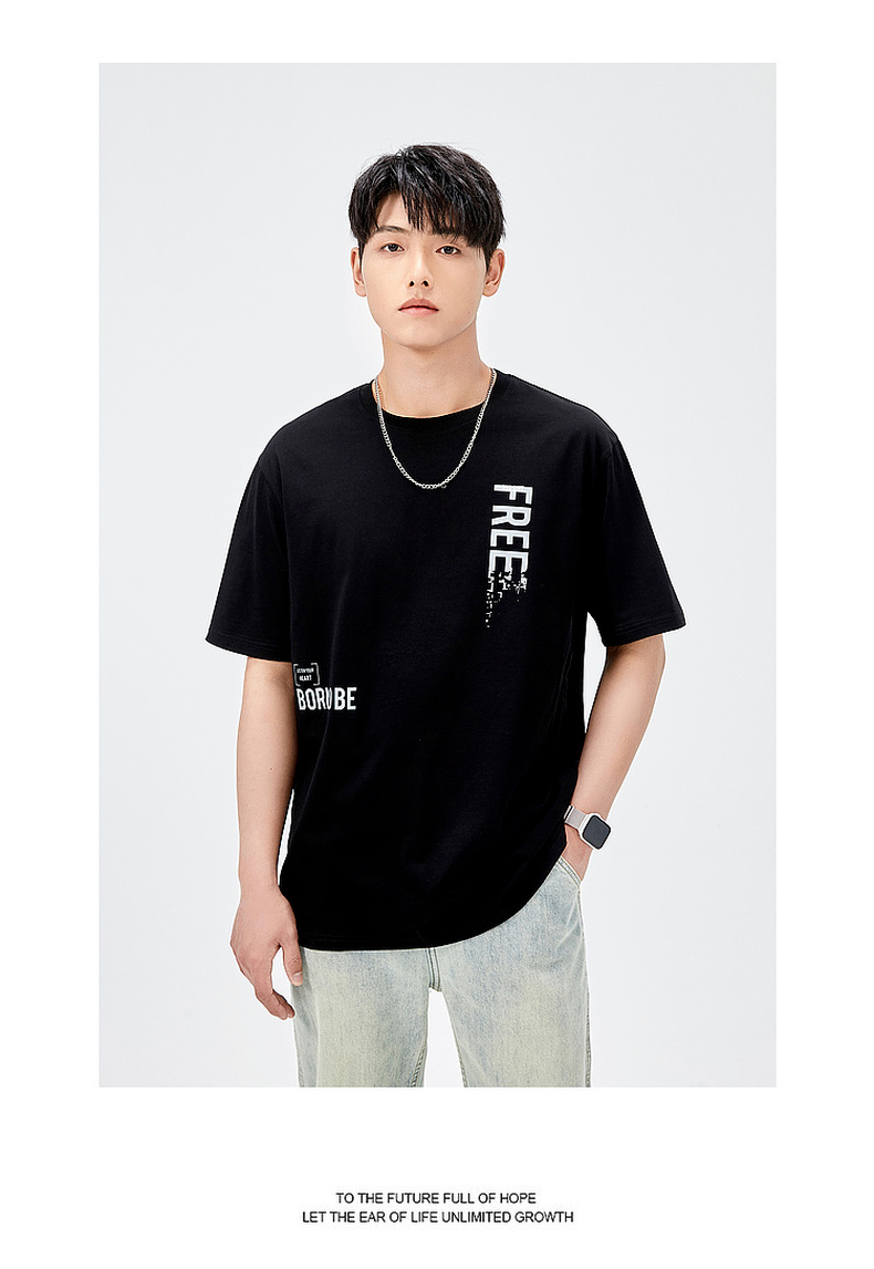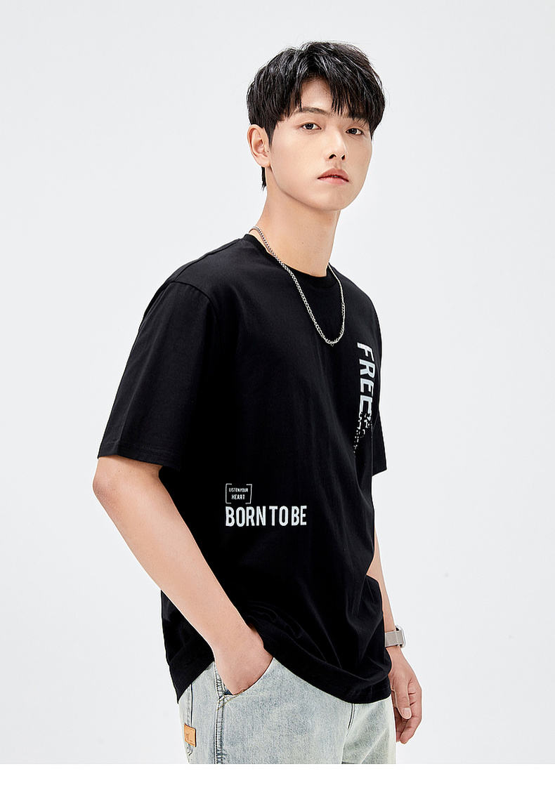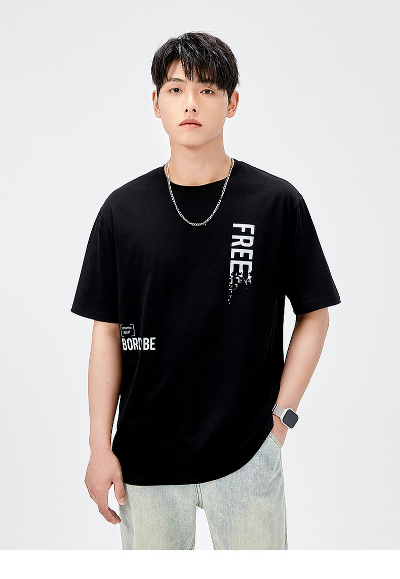 GXG男装【撞色字母】夏季时尚百搭印花男士圆领休闲纯棉短袖t恤K&C
