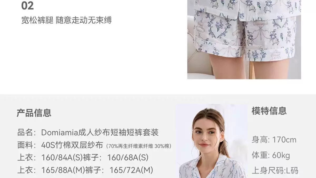 Domiamia 夏季成人纱布短袖短裤套装 孕前孕后可穿家居服