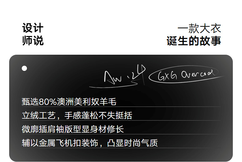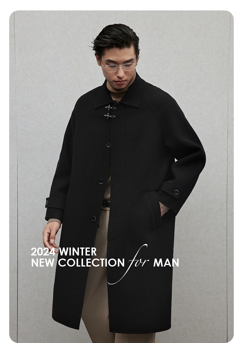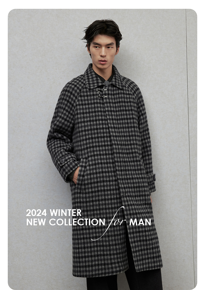 GXG男装 多色飞机扣设计时尚长款羊毛大衣外套 2024冬季热卖