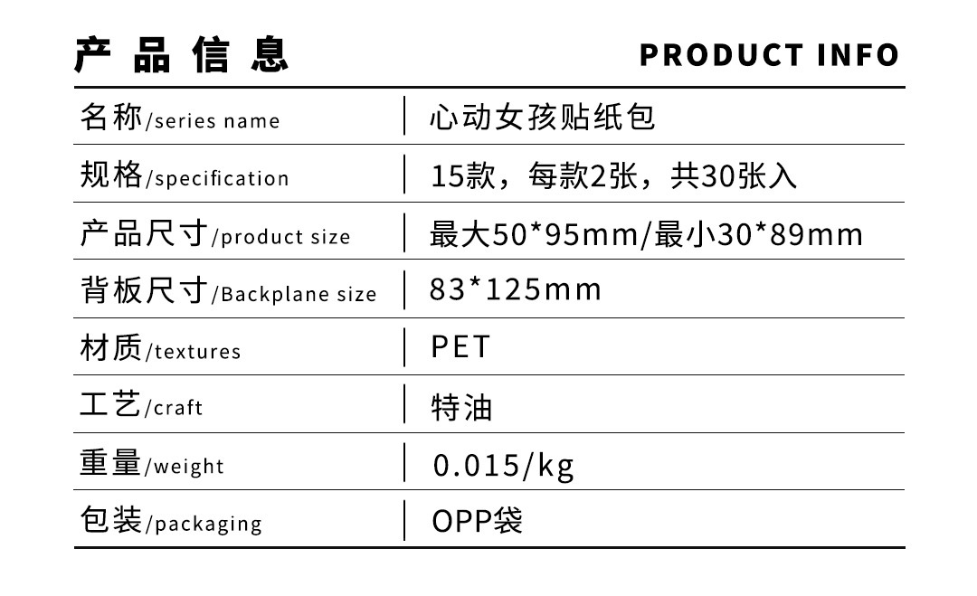 Infeel.me心动女孩系列特油PET贴纸包