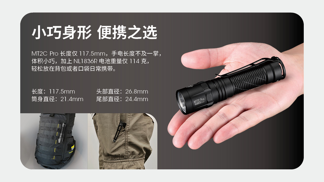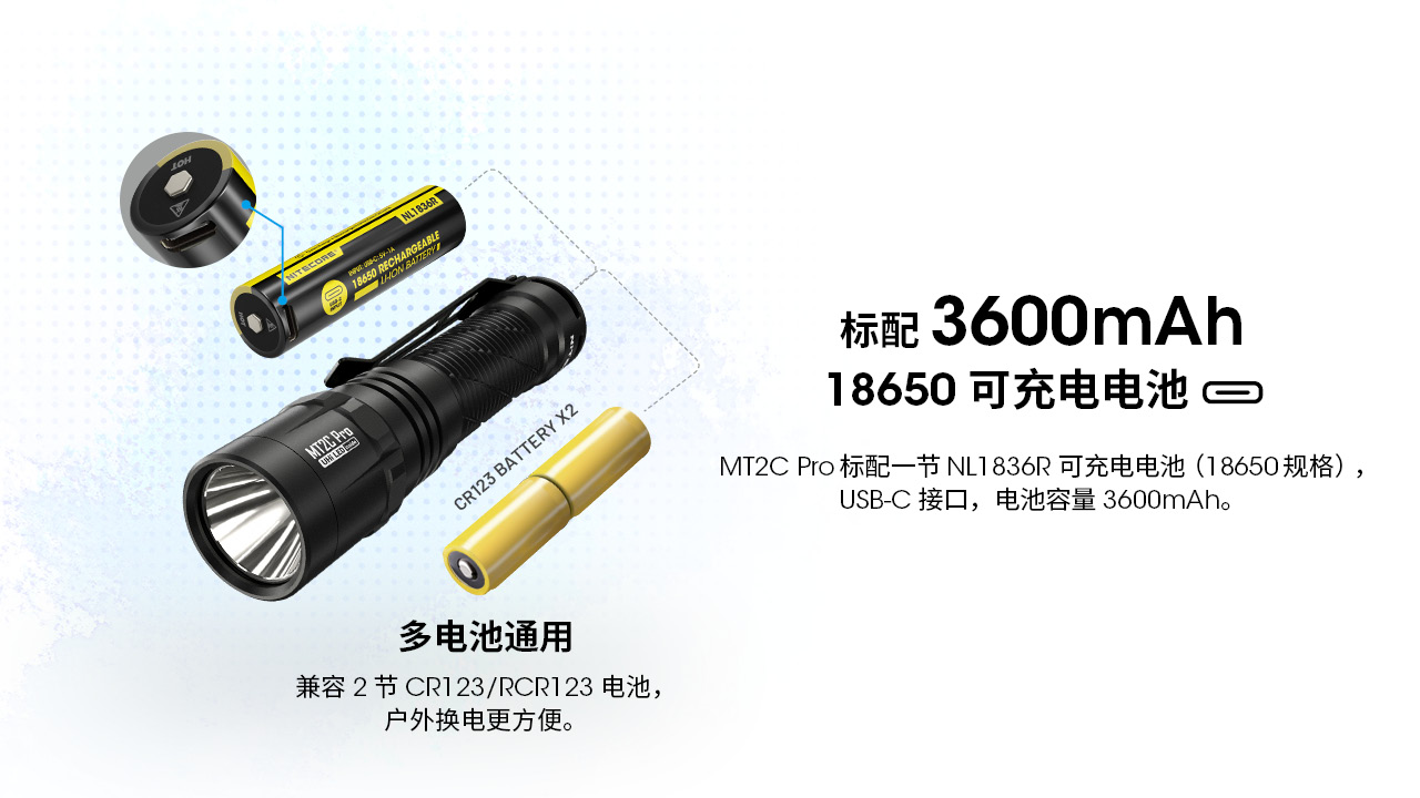 NITECORE奈特科尔MT2C PRO便携战术户外应急EDC家用18650手电筒