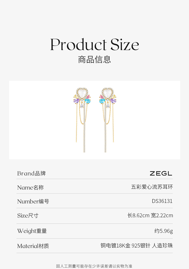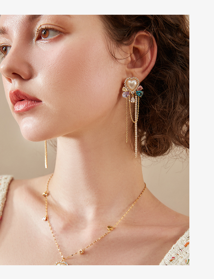 ZEGL设计师彩色爱心流苏耳环女小众设计感高级气质耳钉银针耳饰品
