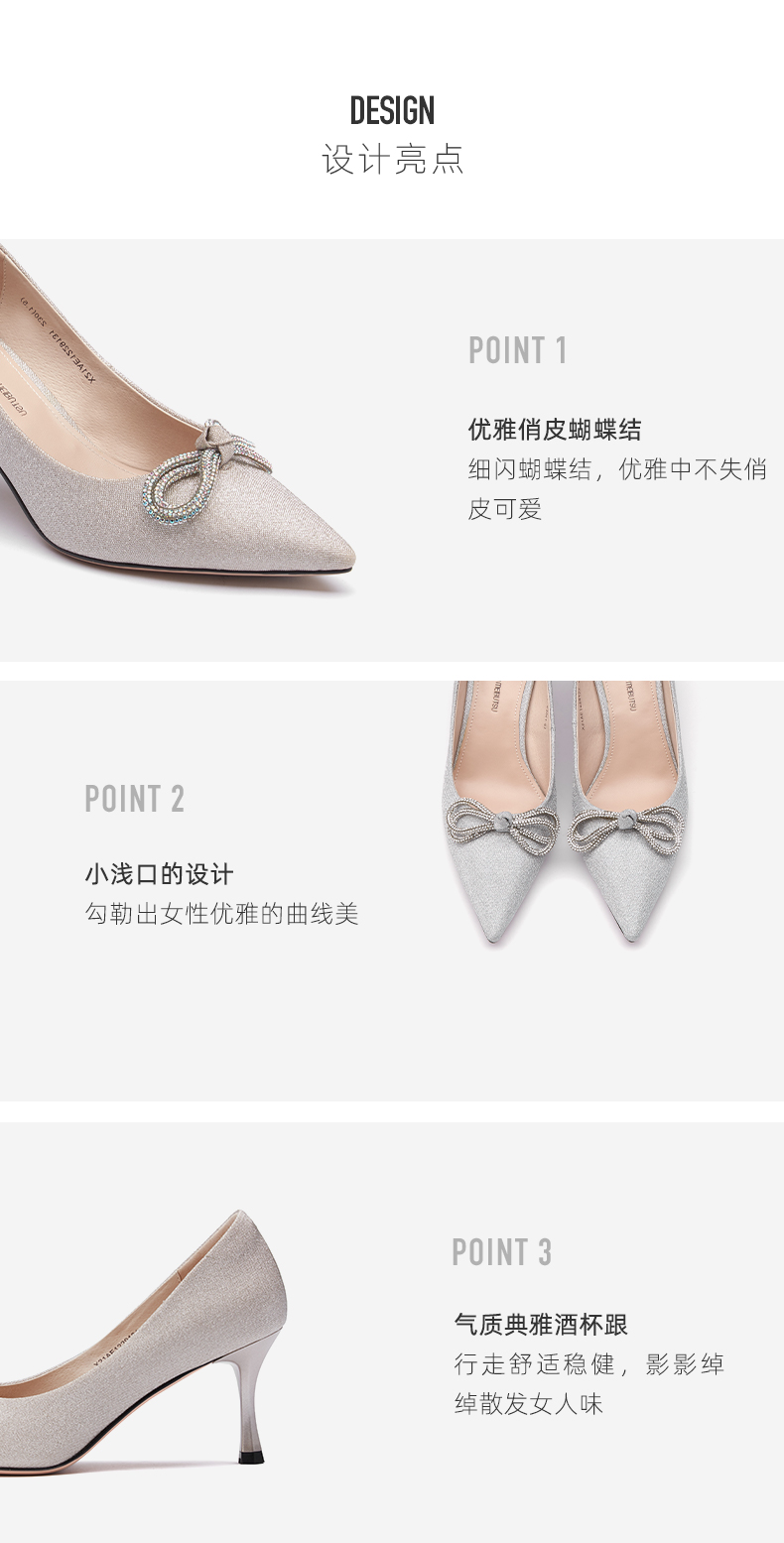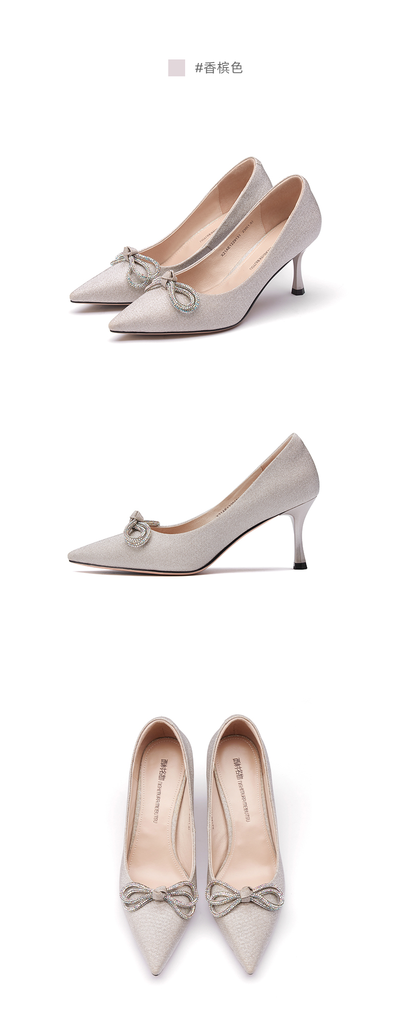 西村名物2021春季新款高跟鞋女蝴蝶结名媛尖头细跟绸缎单鞋X21AE12291