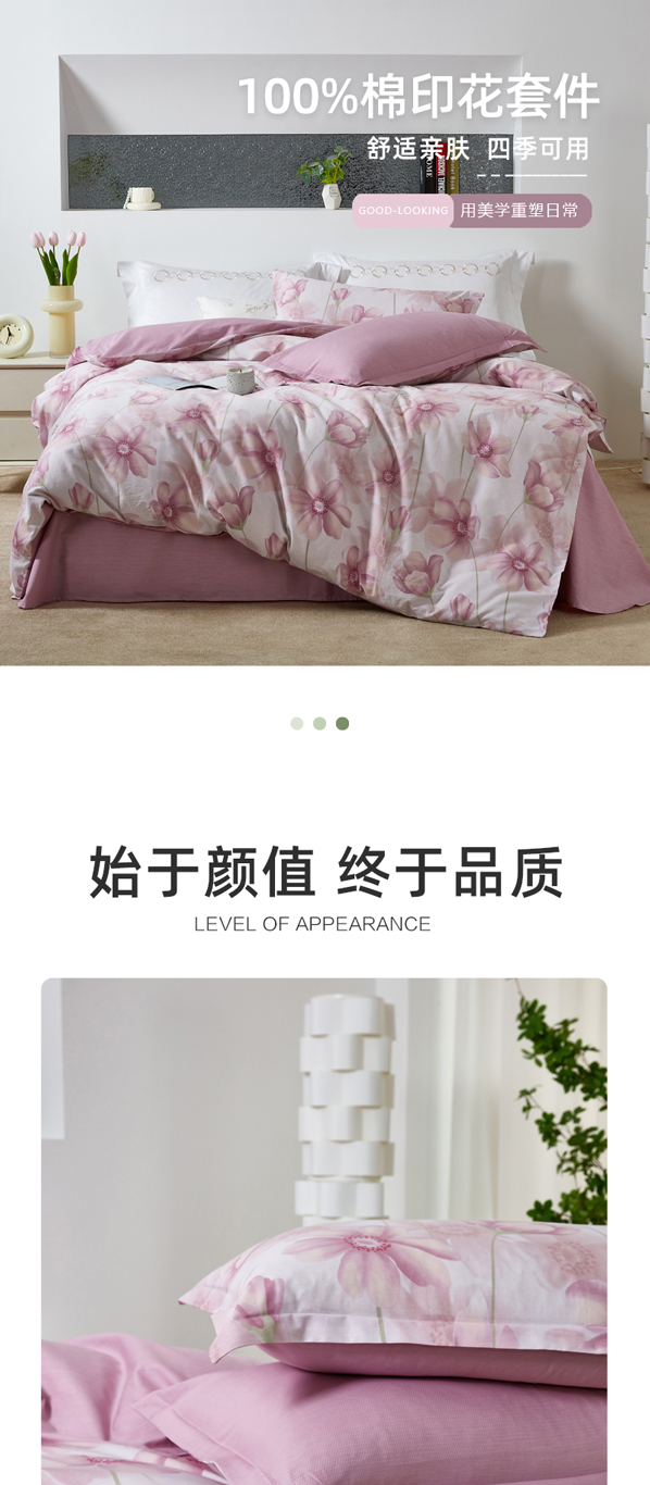 利路米家纺春季新款全棉印花四件套 桂花茶香