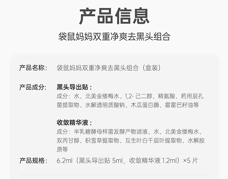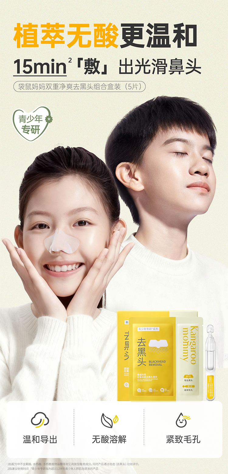 【青少年去黑头贴】无酸无痛温和去黑头 袋鼠妈妈双重净爽去黑头组合