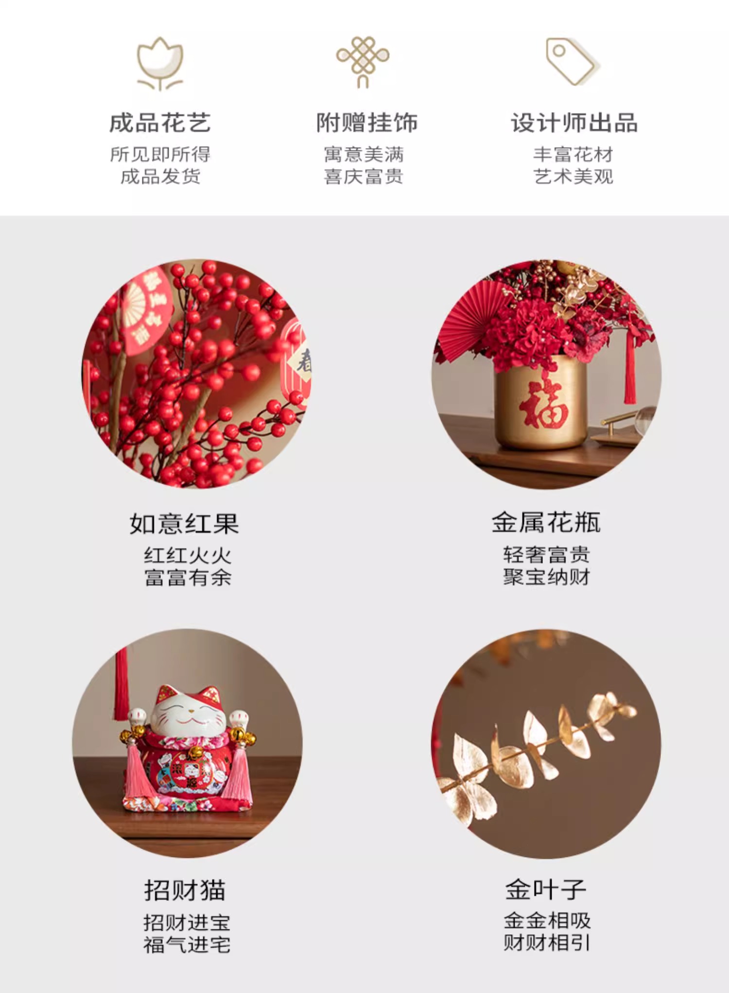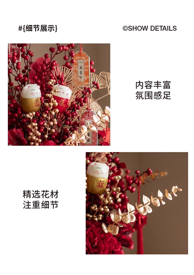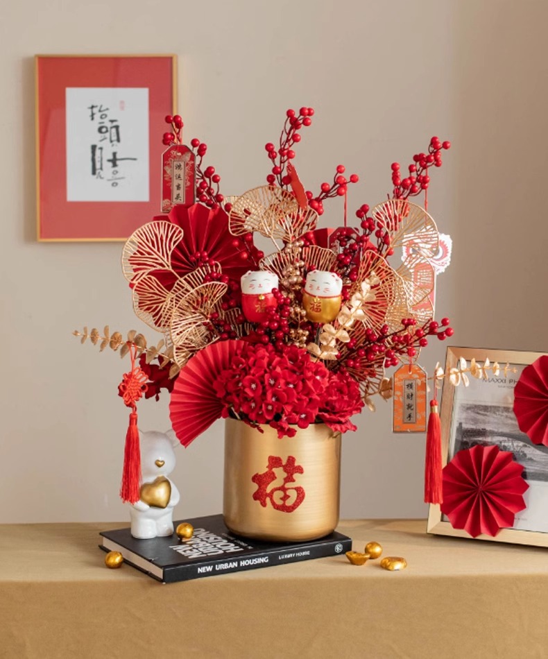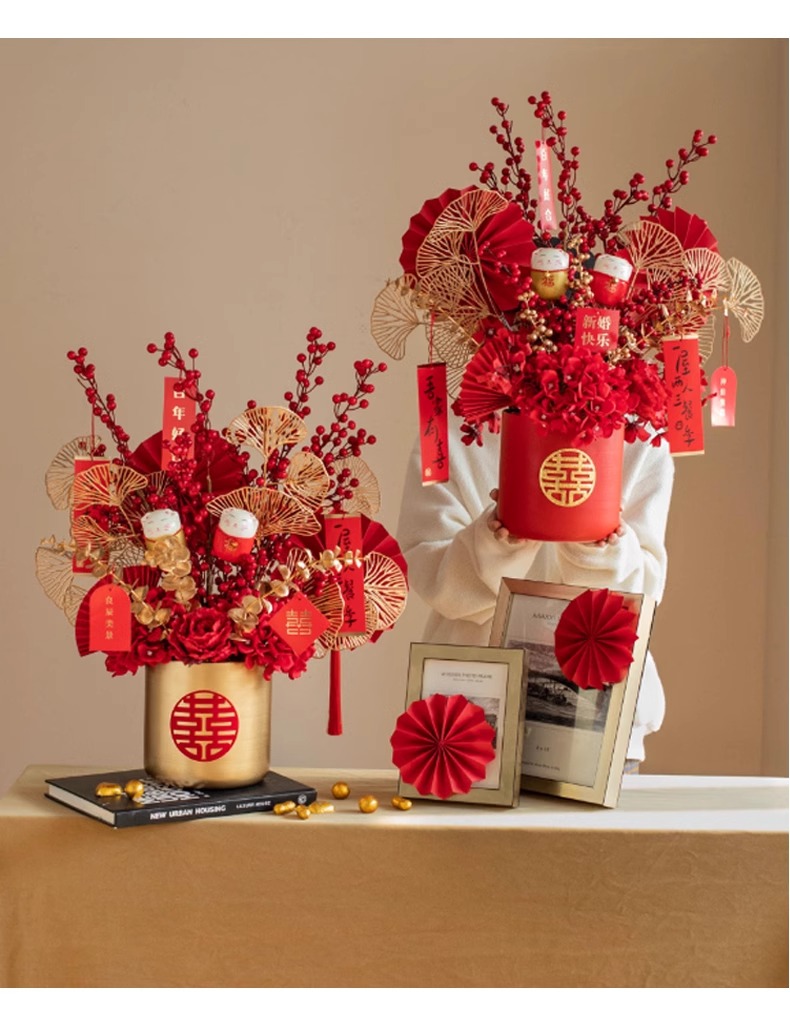 南十字星福桶摆件年宵花客厅桌面装饰结婚新房布置轻奢高档乔迁新居礼品
