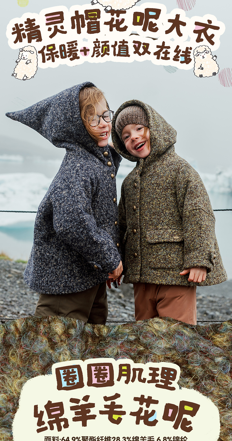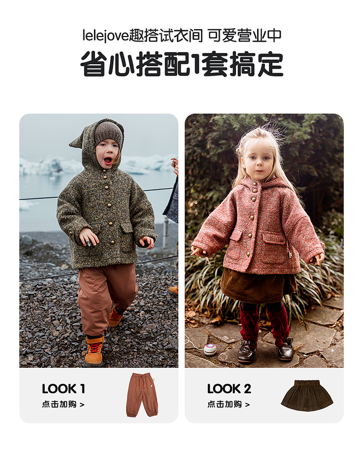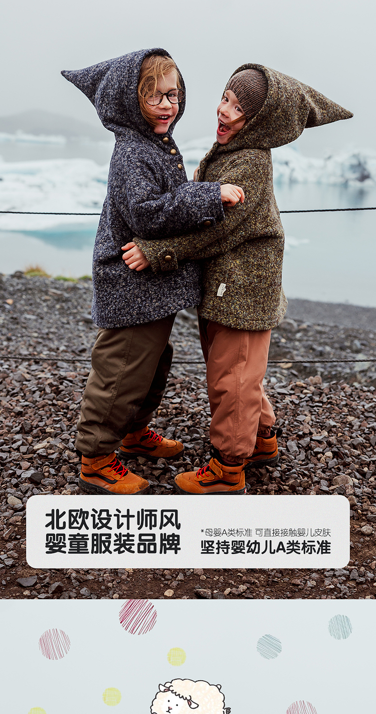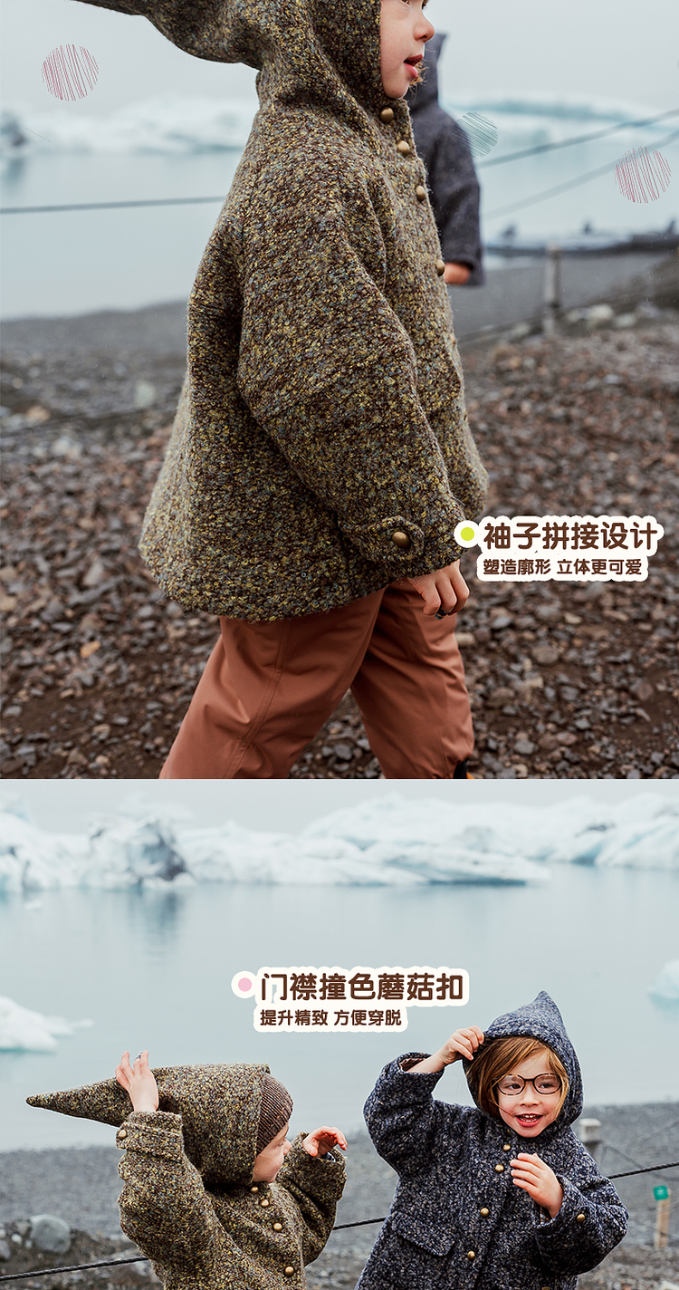 【云优选】lelejove北欧风秋冬儿童羊毛混纺精灵帽花呢大衣防风保暖舒适外套
