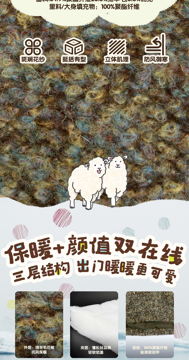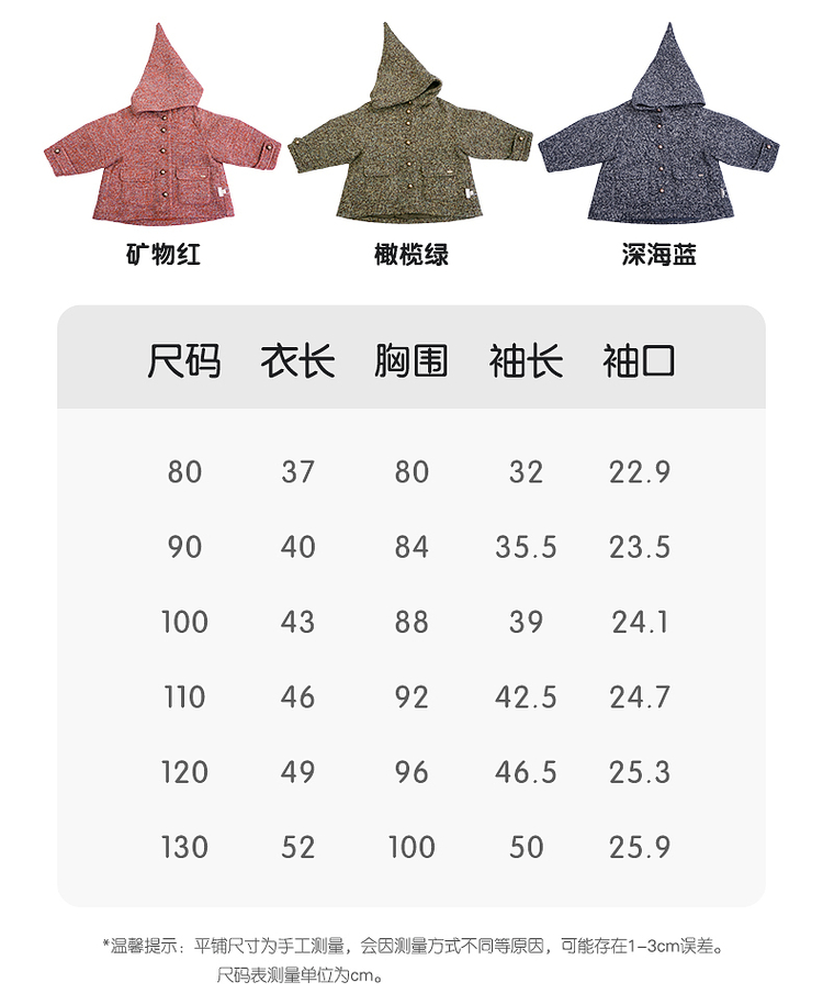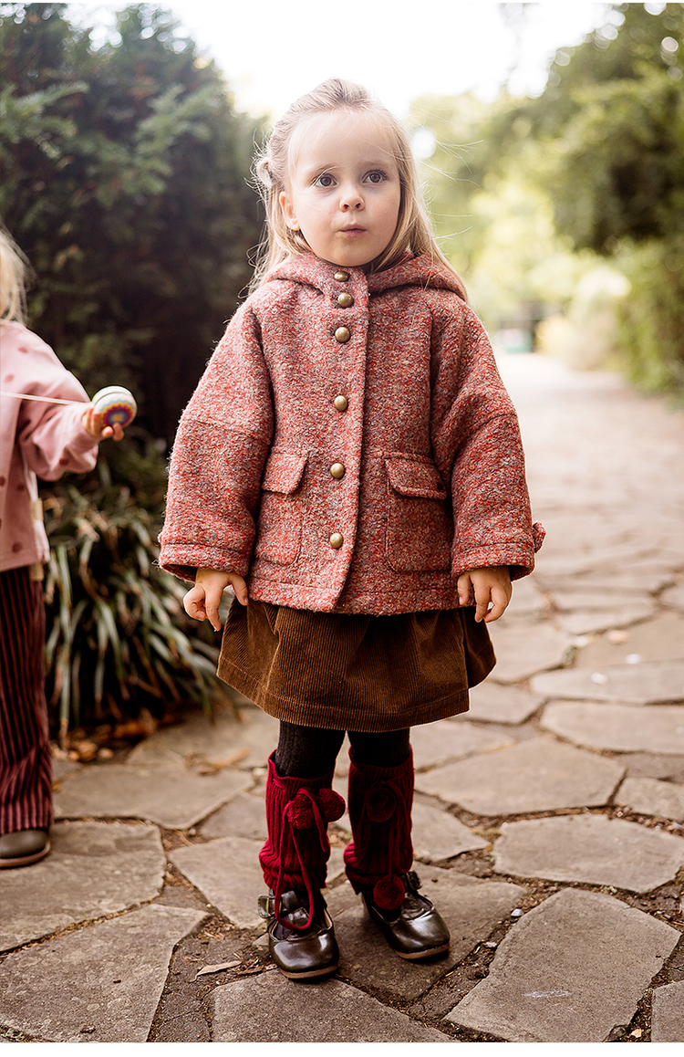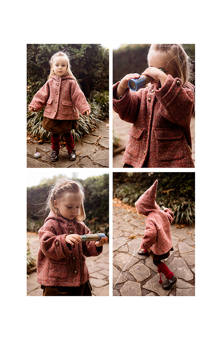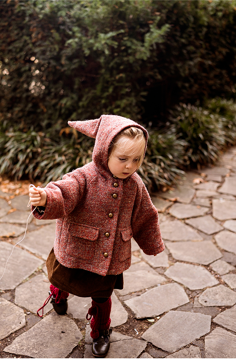 【云优选】lelejove北欧风秋冬儿童羊毛混纺精灵帽花呢大衣防风保暖舒适外套
