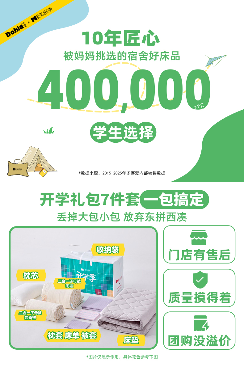 【宿舍七件套配齐】【八款可选】多喜爱学生季大礼包宿舍纯棉床单被套枕套床垫被芯枕芯全套装一整套拎包入住