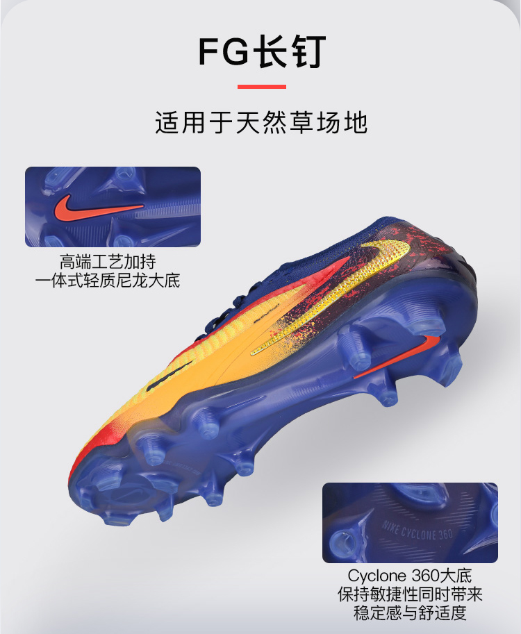 小李子NIKE耐克PHANTOM 高端FG长钉训练足球鞋成人男HQ2332-800