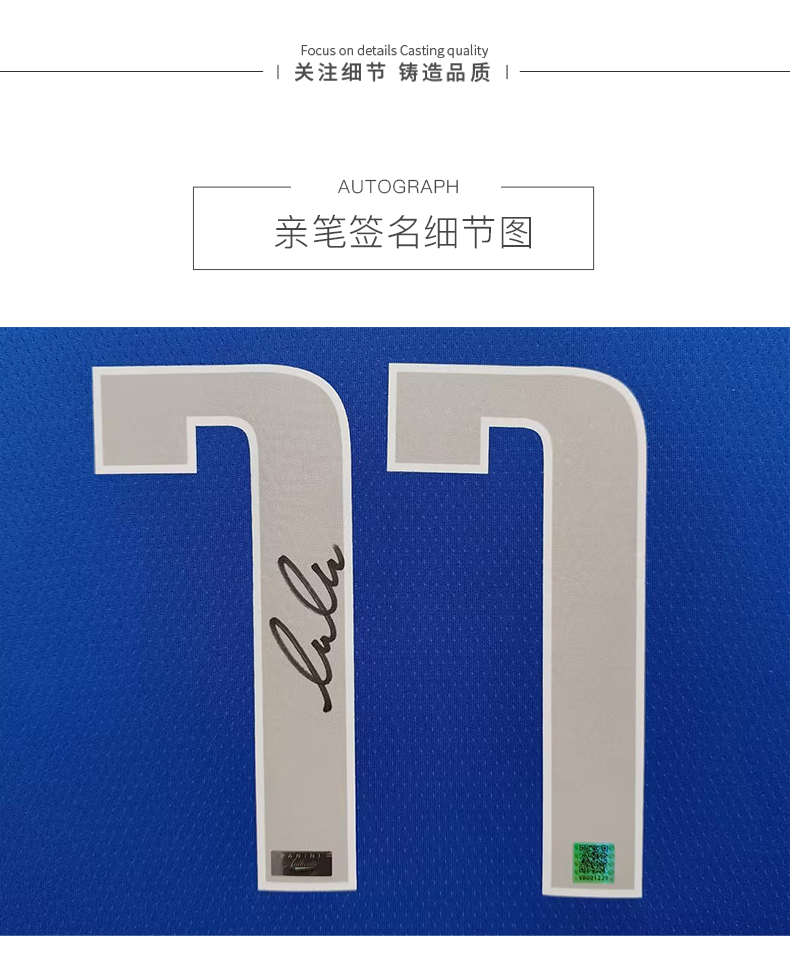 收藏系列 东契奇 独行侠队77号蓝色球迷版 亲笔签名球衣