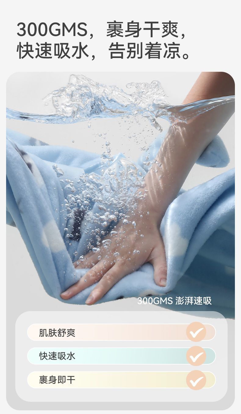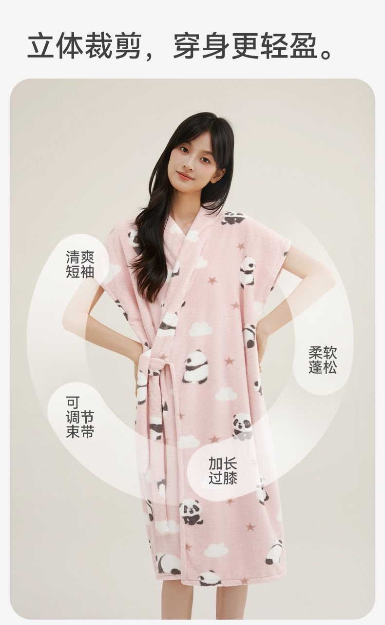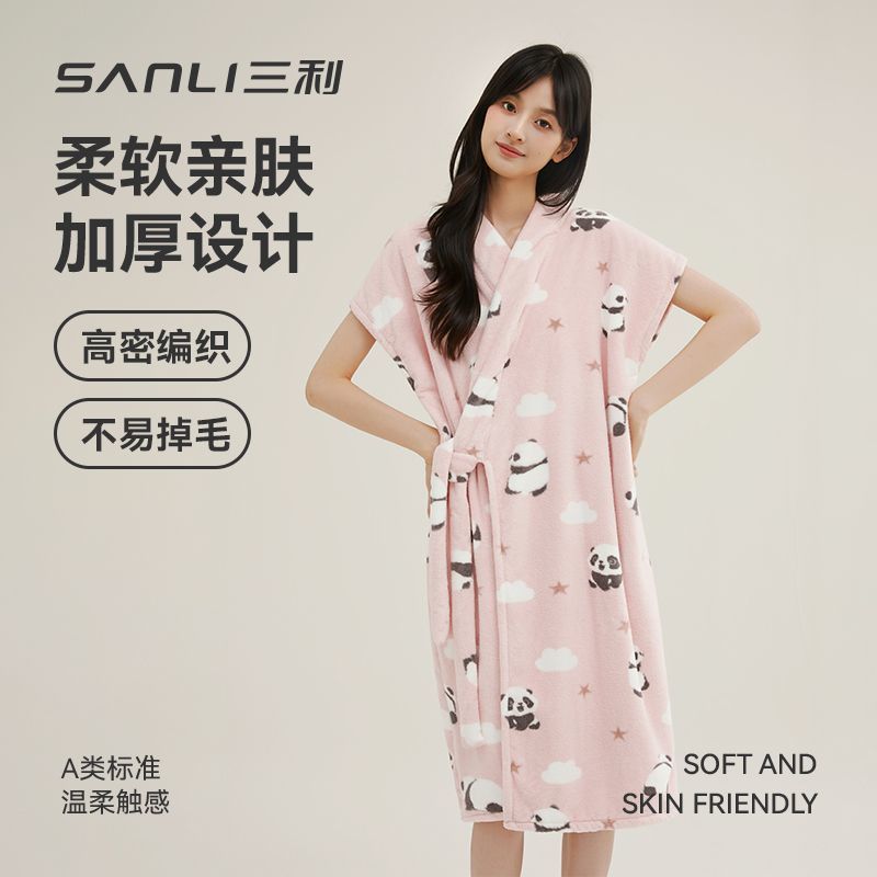 三利丨珊瑚绒7A抗菌柔软吸水速干浴袍洗澡浴衣家居服浴袍可穿可裹浴袍