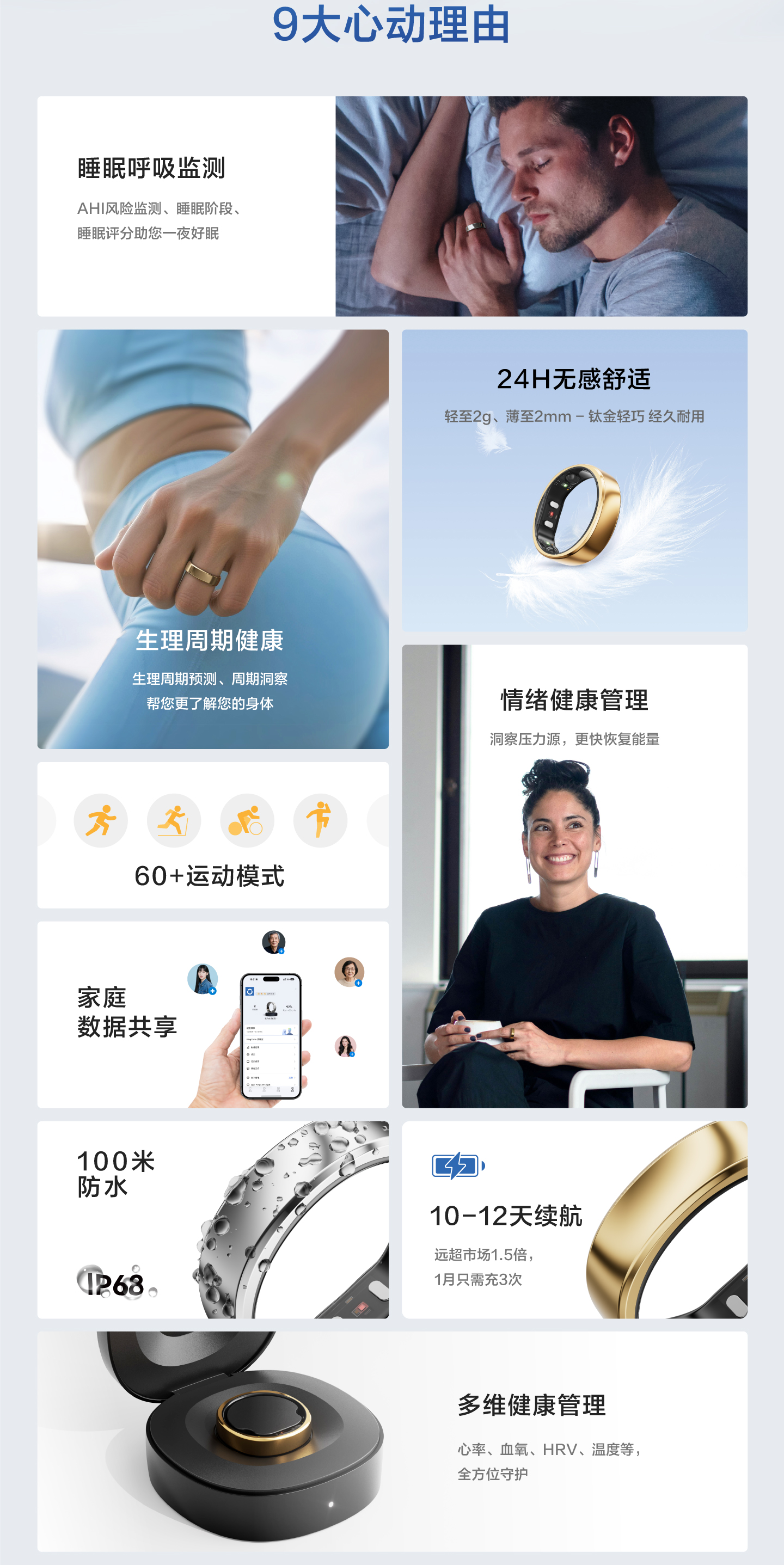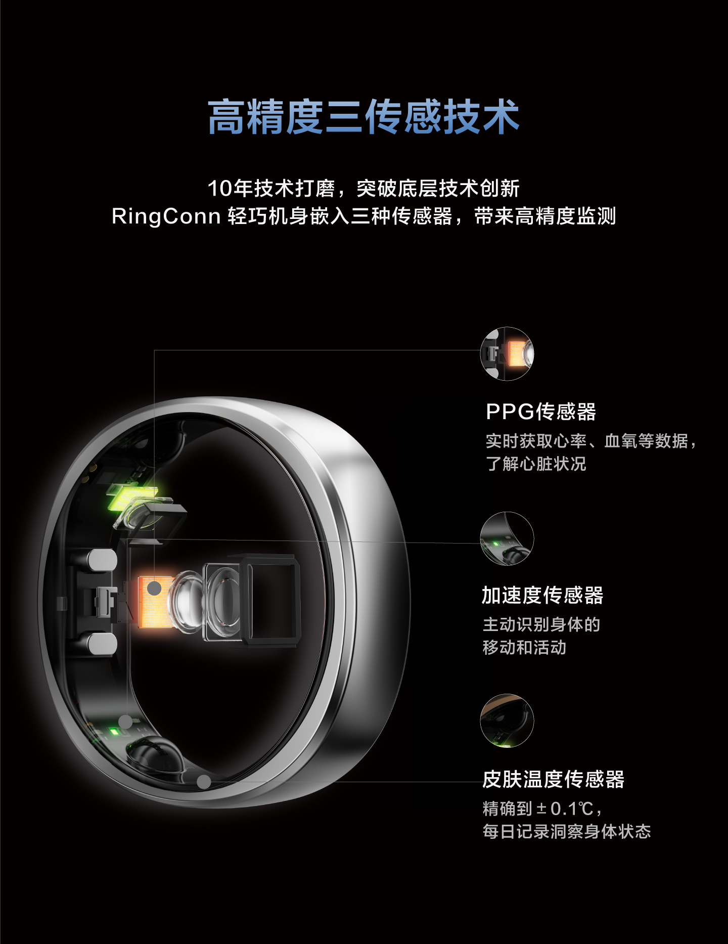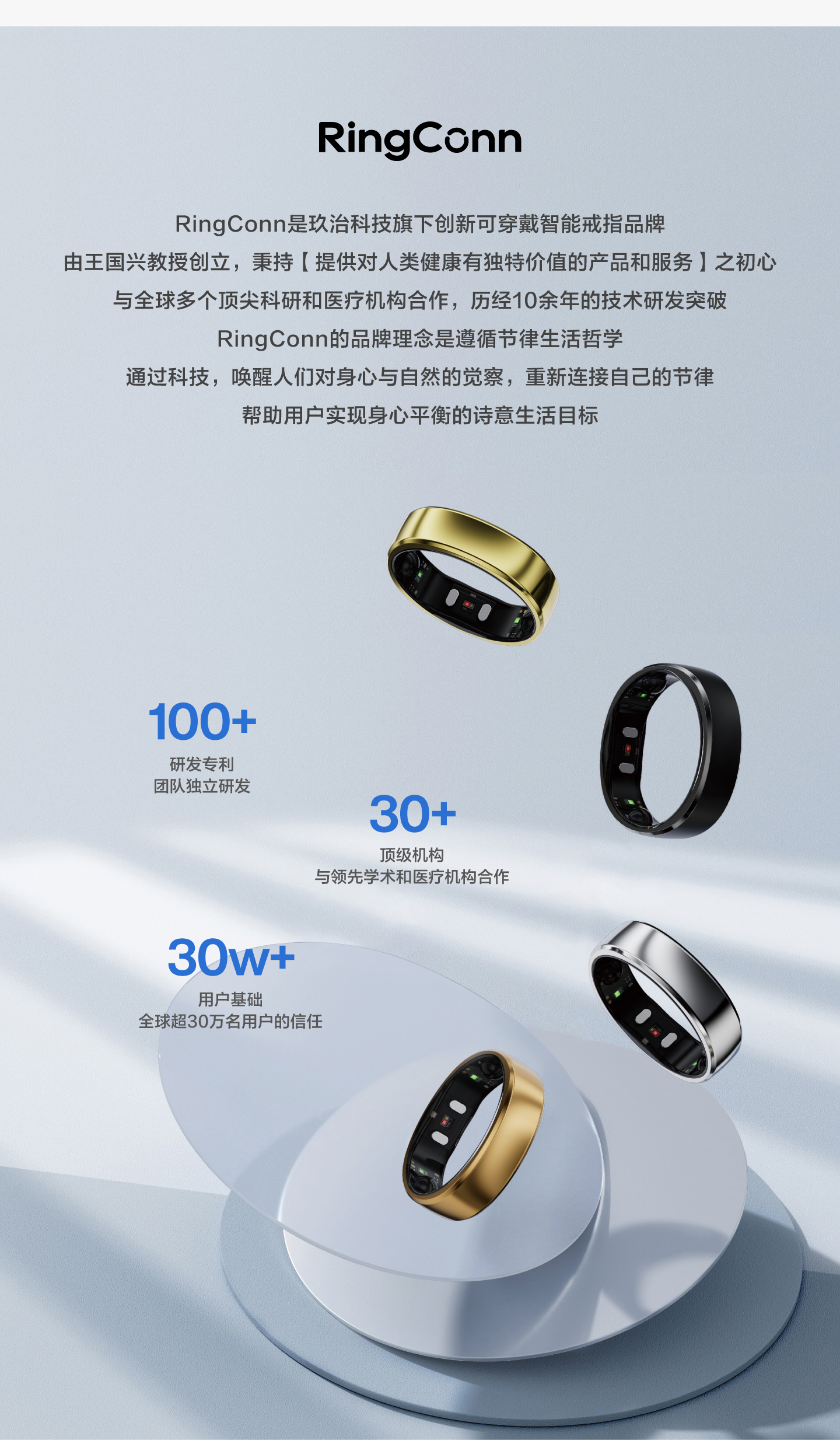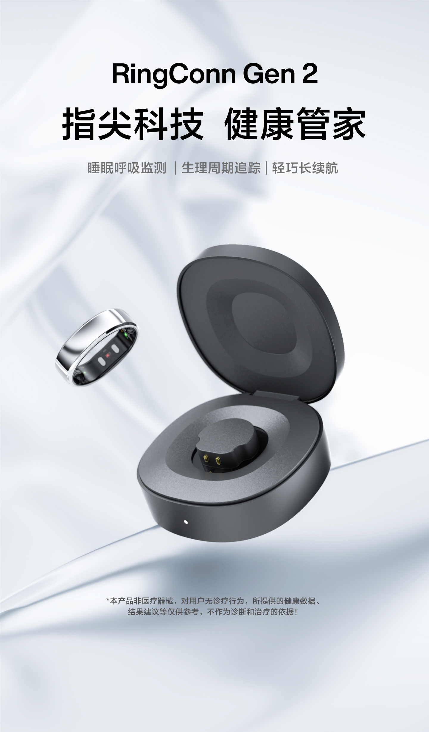RingConn Gen 2 智能戒指 睡眠呼吸监测心率异变血氧女性生理期预测月经 健康指导12天长续航
