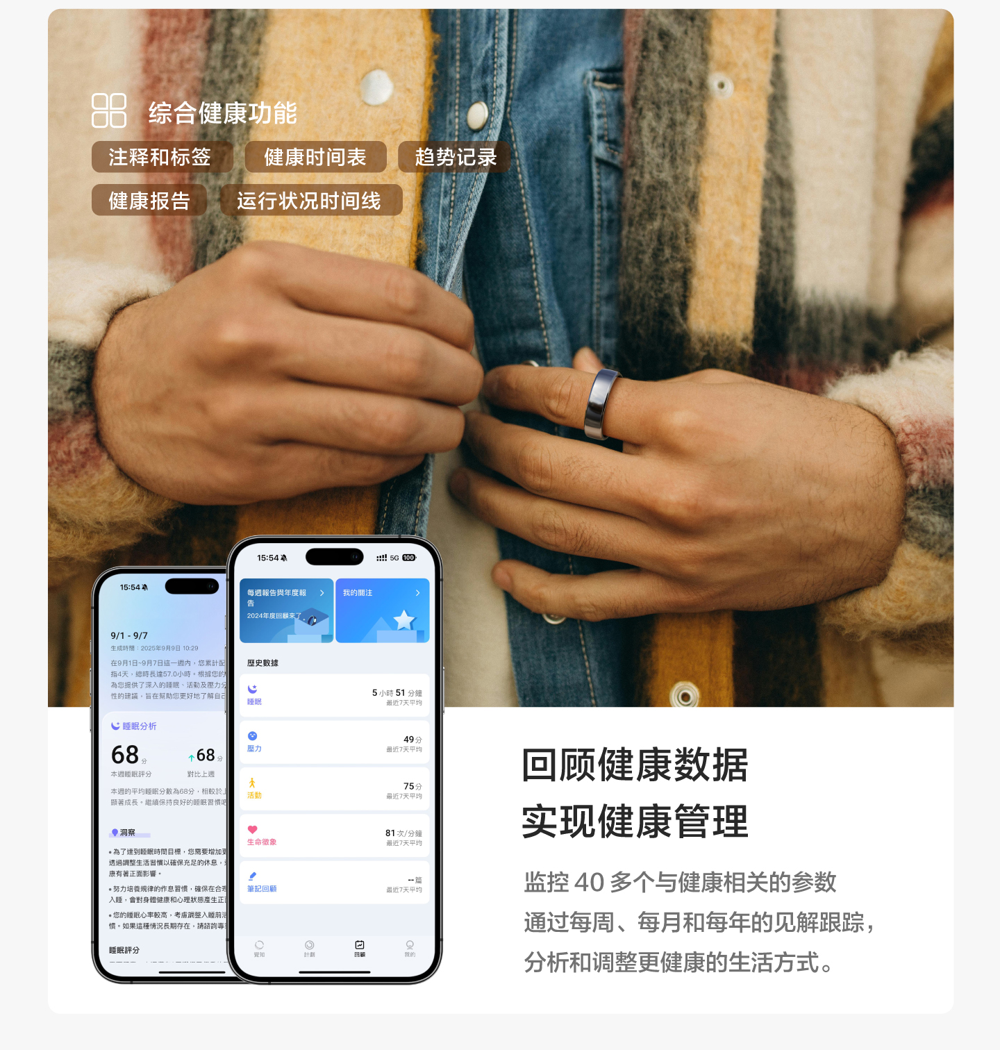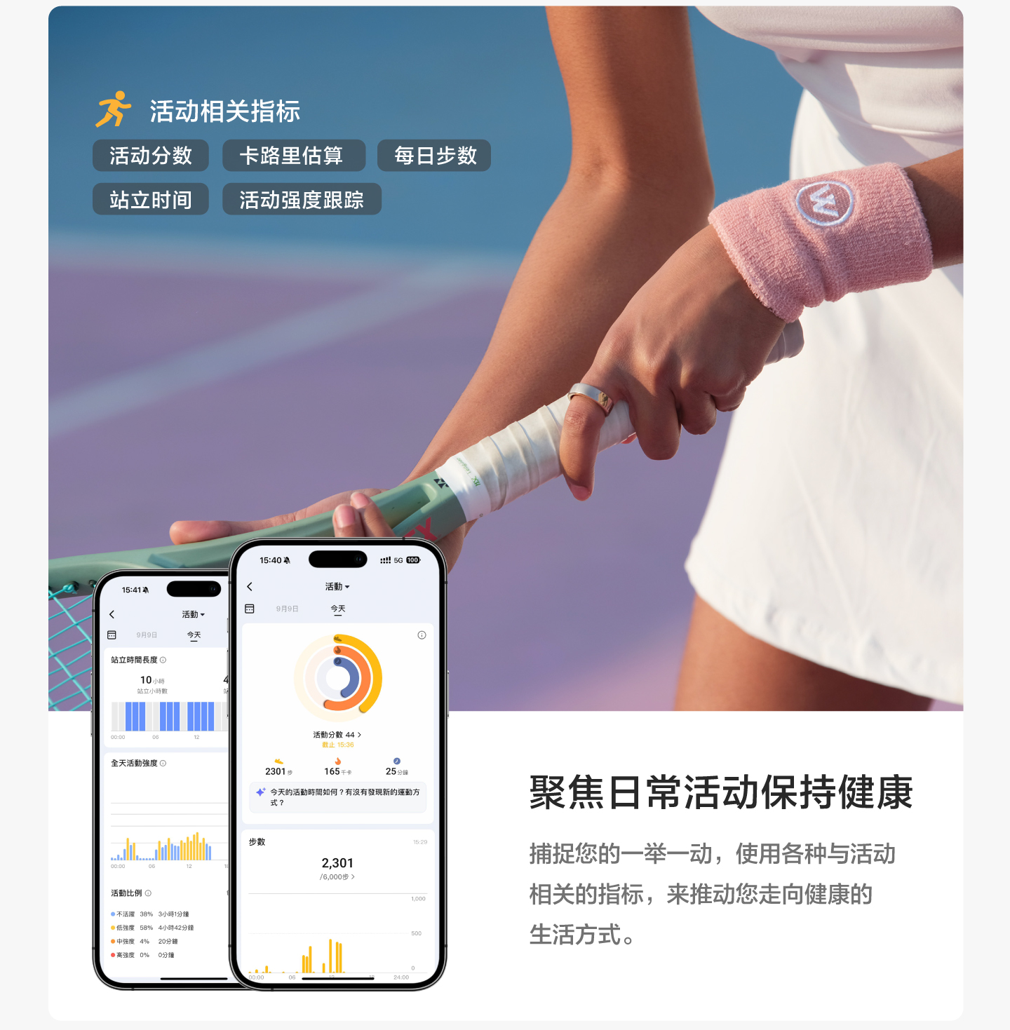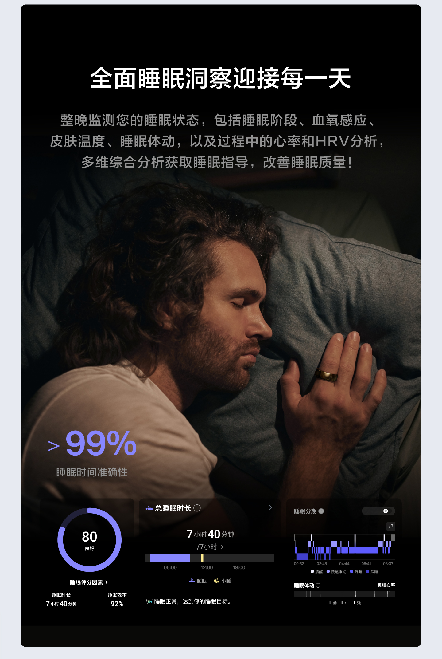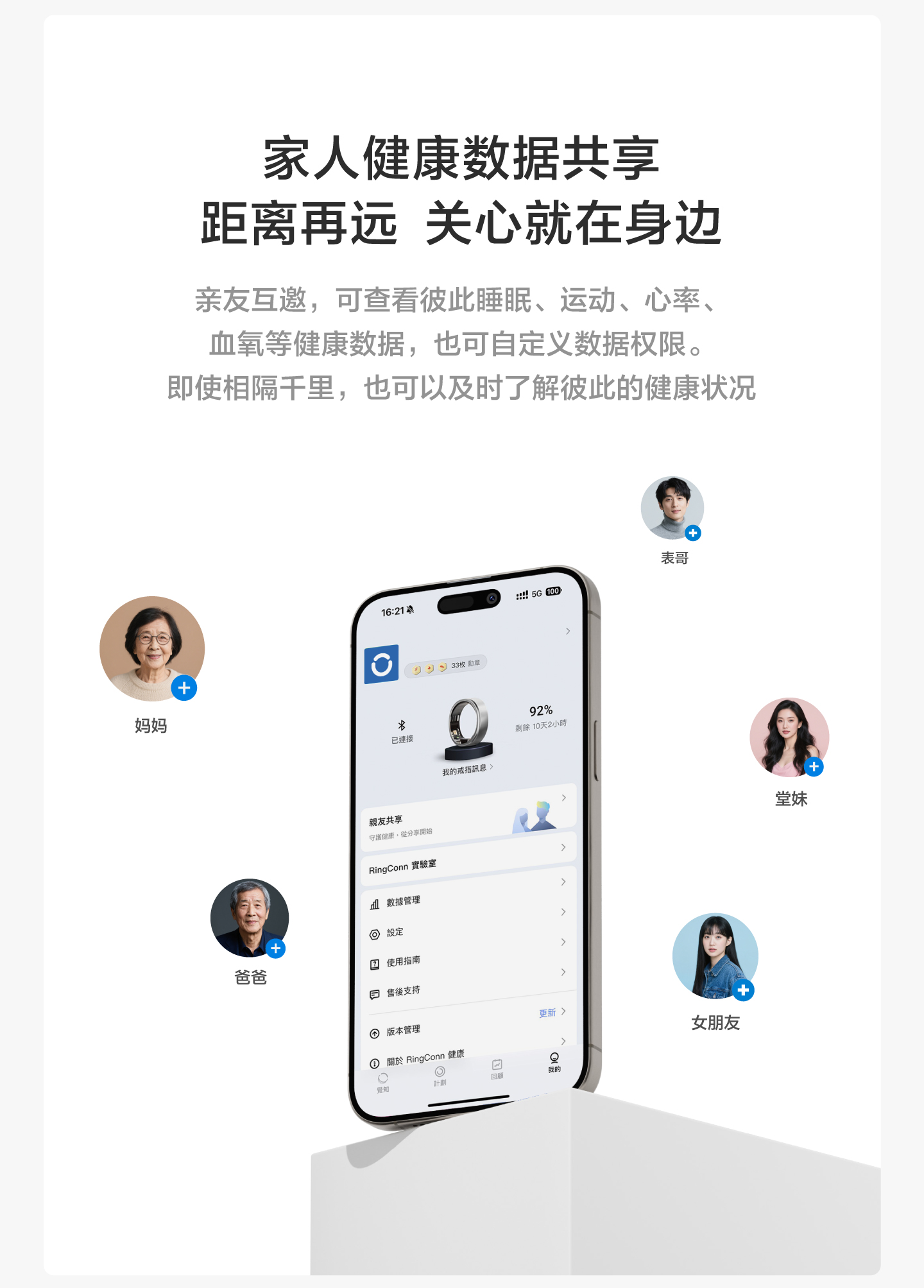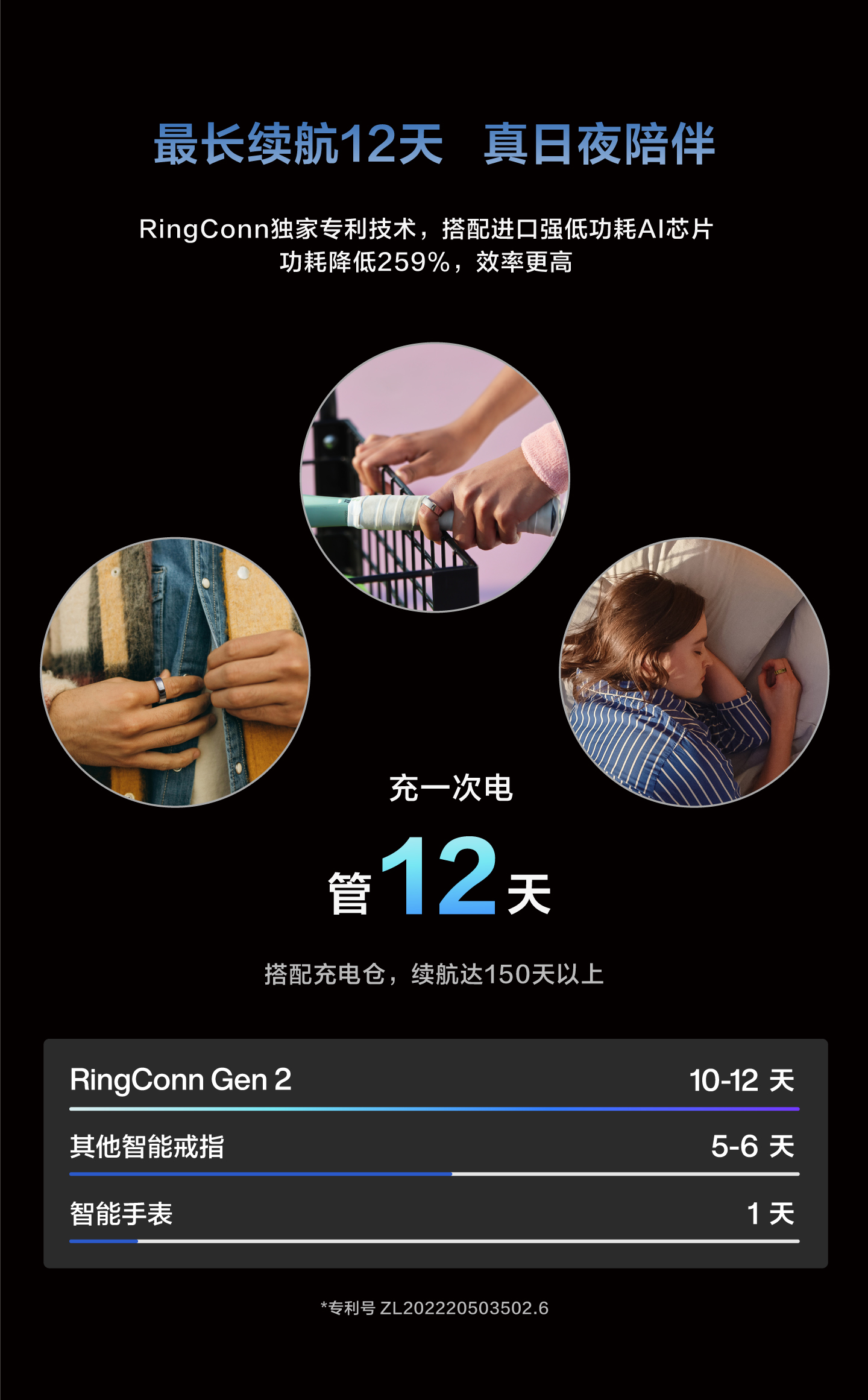 RingConn Gen 2 智能戒指 睡眠呼吸监测心率异变血氧女性生理期预测月经 健康指导12天长续航