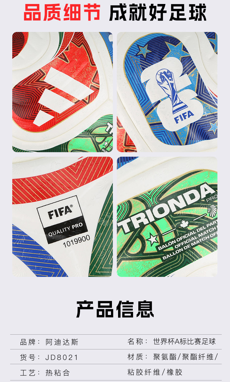 小李子阿迪达斯26世界杯热粘合5号A/Pro标专业比赛足球成人JD8021