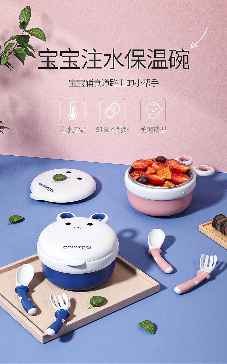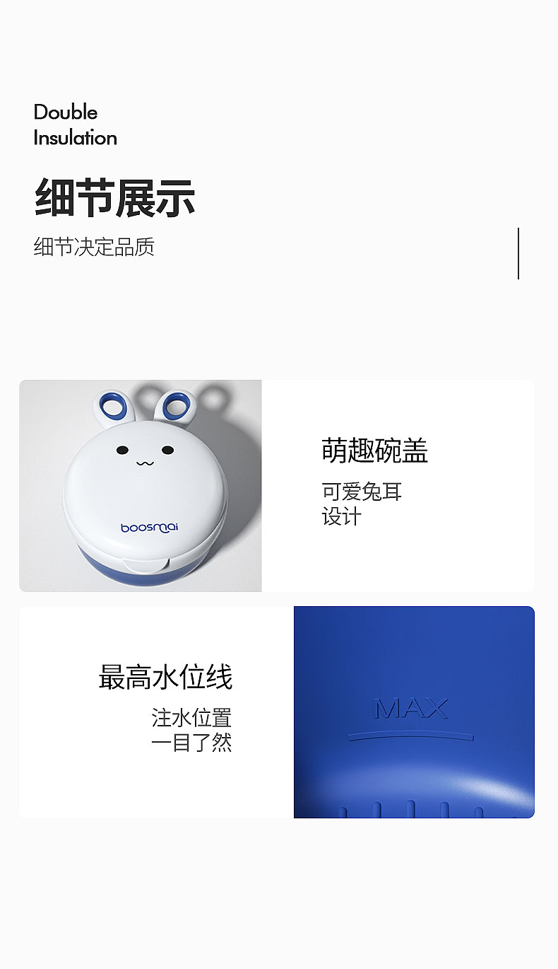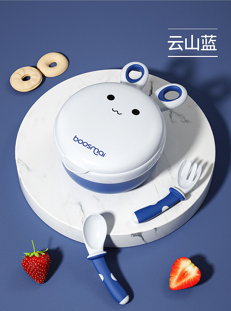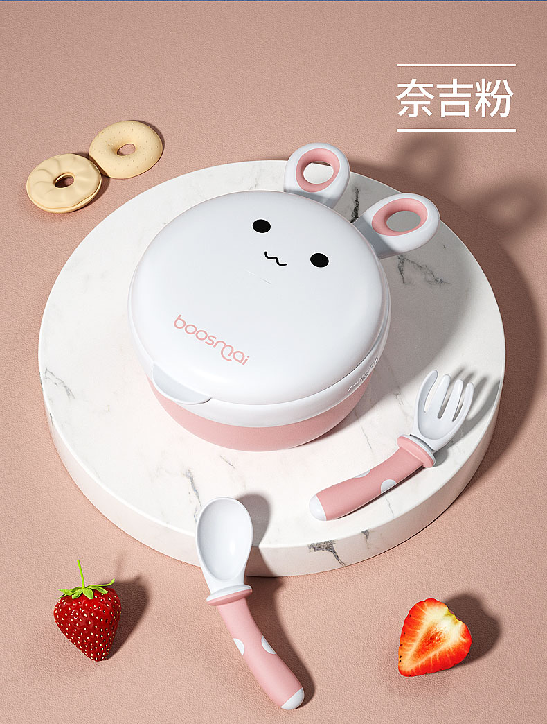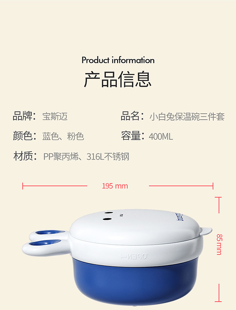 宝斯迈小白兔保温碗三件套400ml(两色可选)