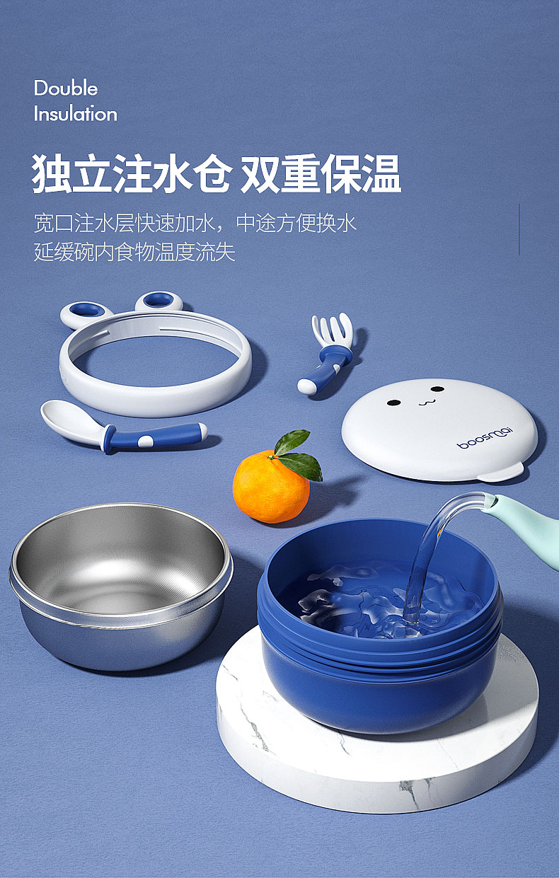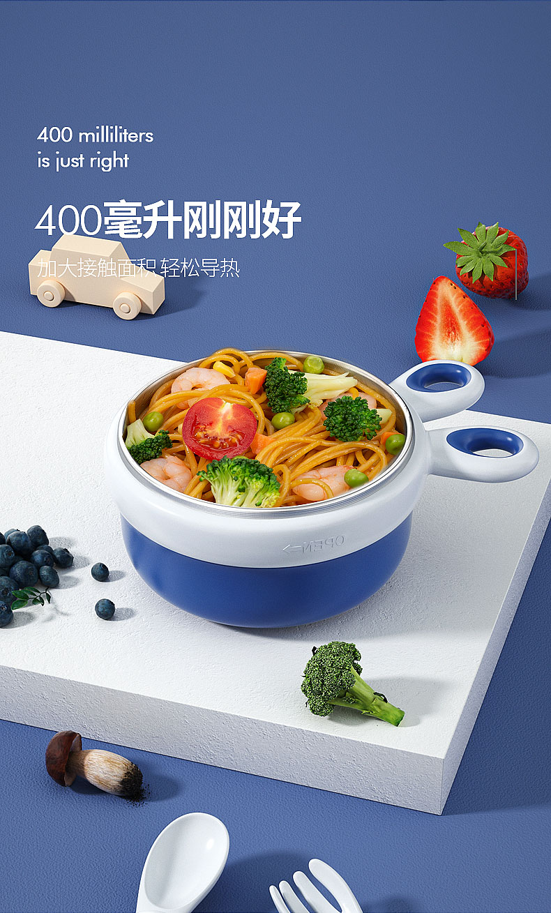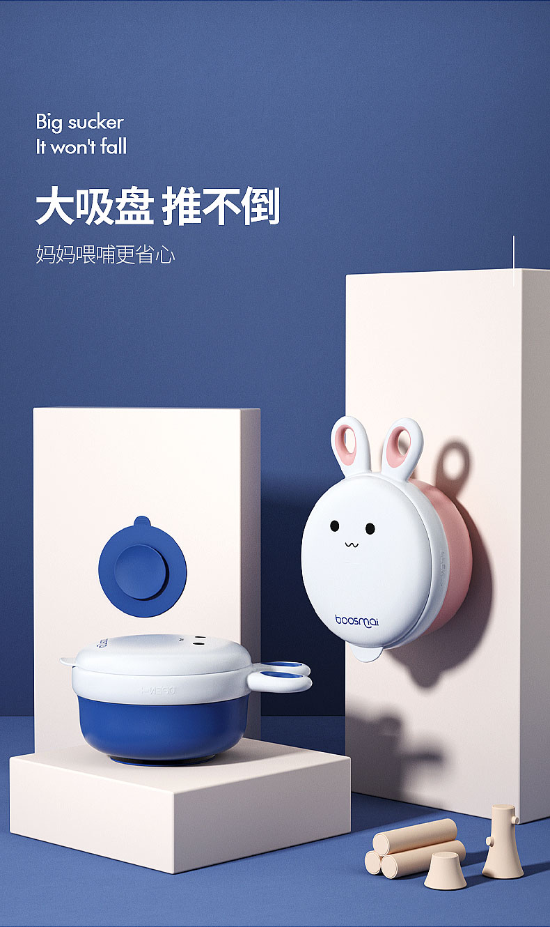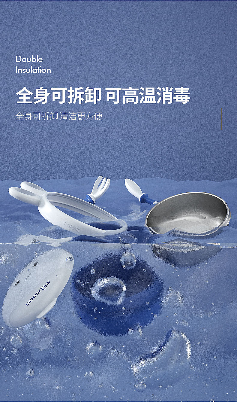 宝斯迈小白兔保温碗三件套400ml(两色可选)