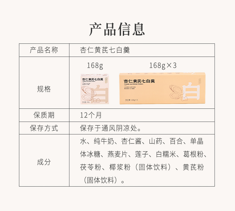 正安 杏仁黄芪七白羹 内白外润元气满满 焕发活力素净感 清甜不腻好温润 早餐办公室下午茶好搭子 168g*3/盒