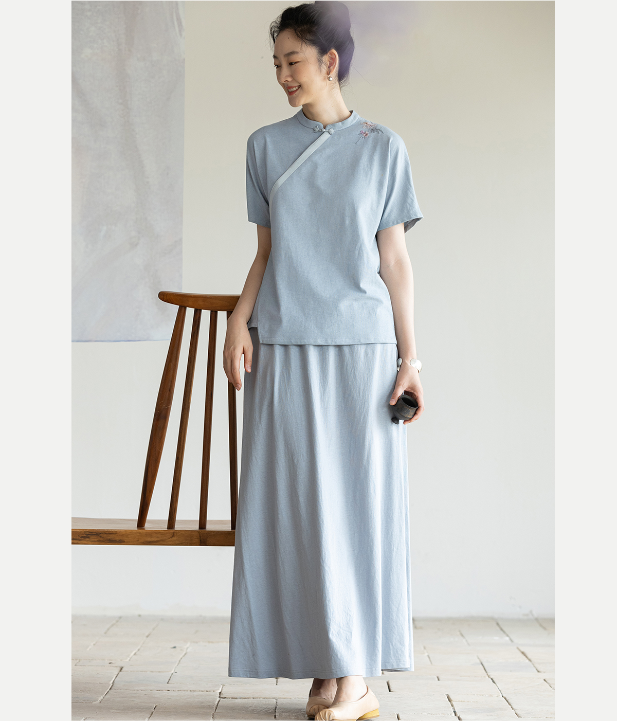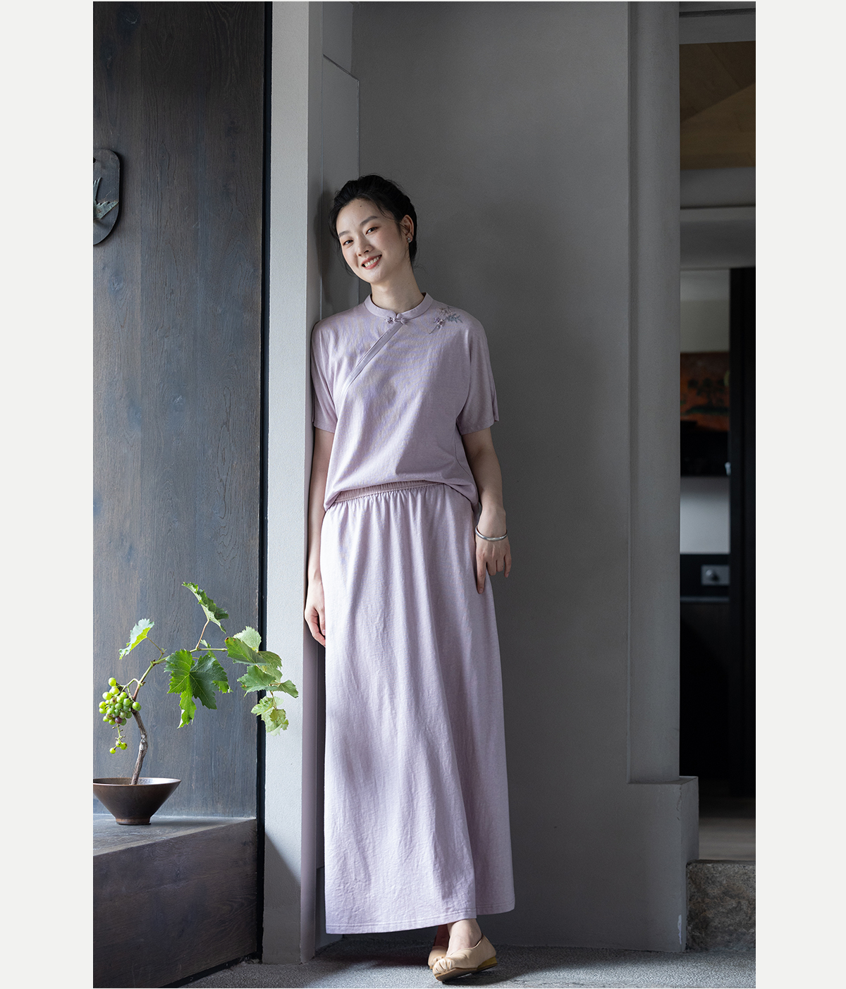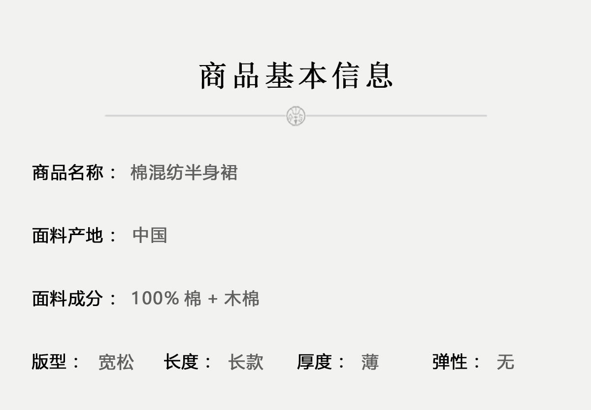 牧衣游棉混纺半身裙轻薄柔软舒适百搭半裙 小院幽
