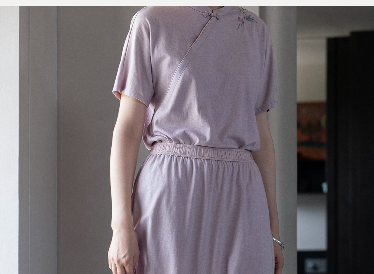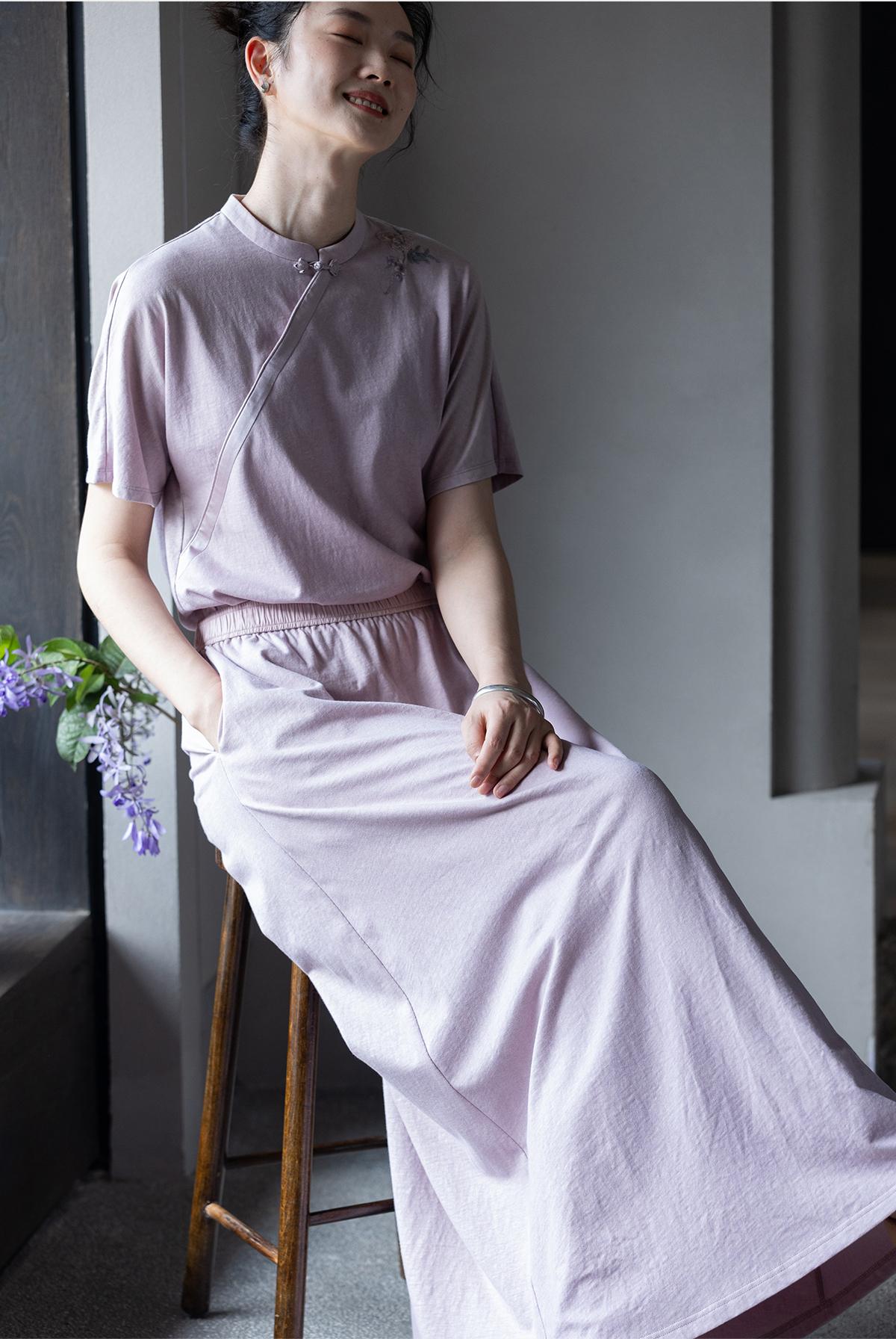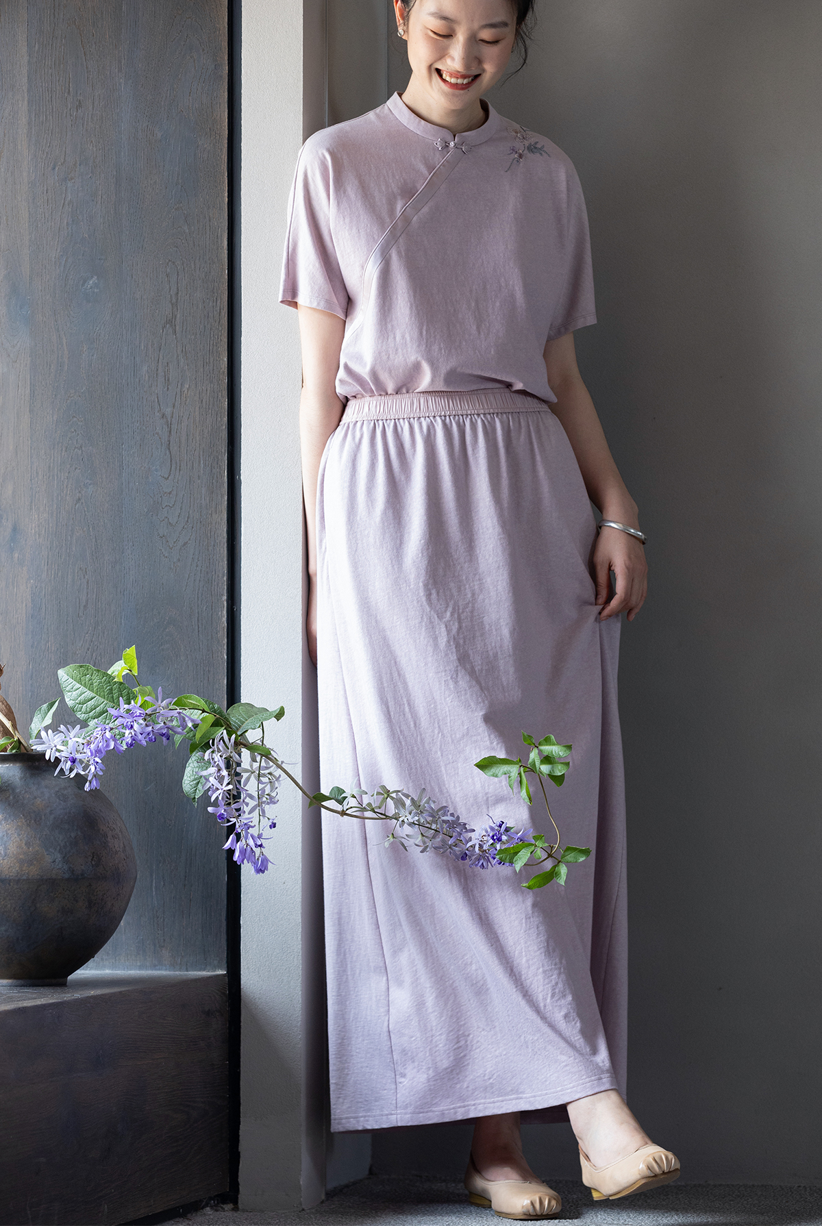 牧衣游棉混纺半身裙轻薄柔软舒适百搭半裙 小院幽